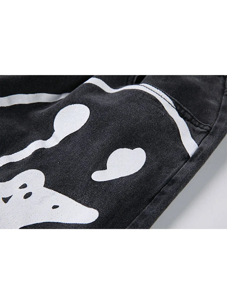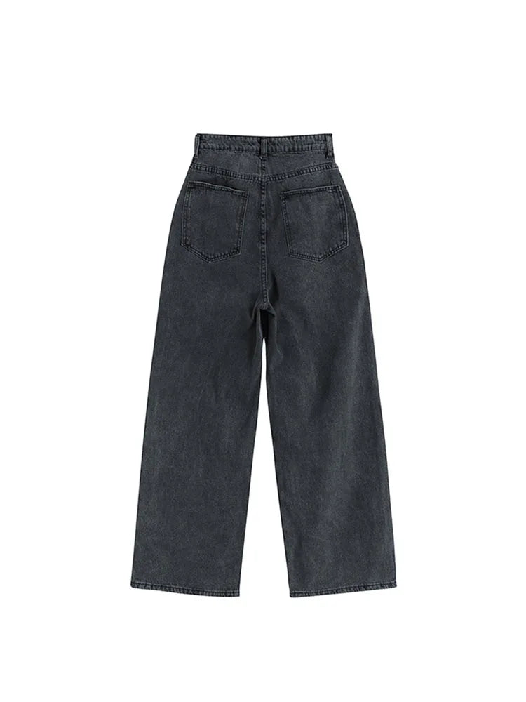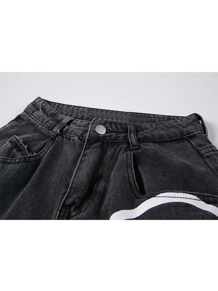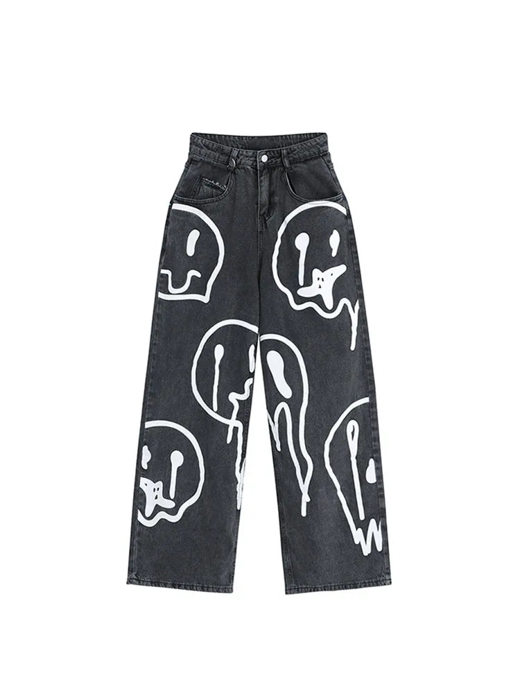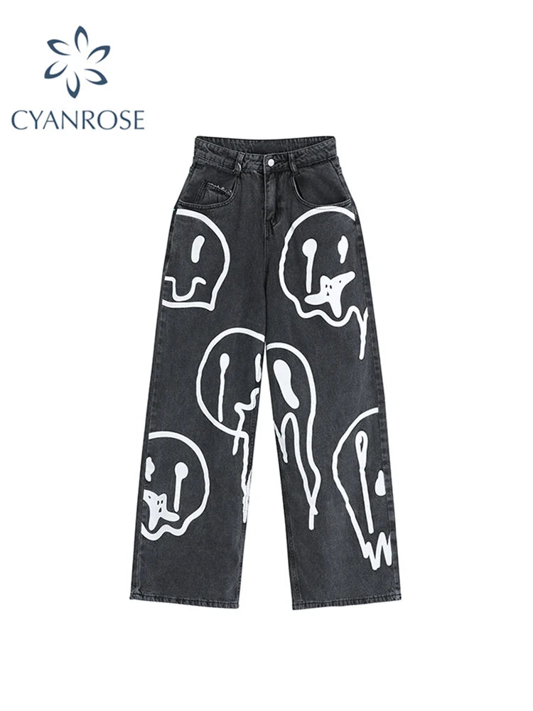 2022 New Spring Fashion Ins Street Hip-hop Printing Wash Jeans Loose Casual Denim Wide Leg Pants Tide Woman Long Trousers