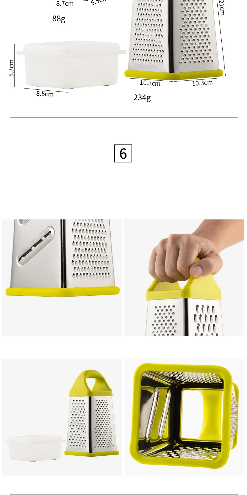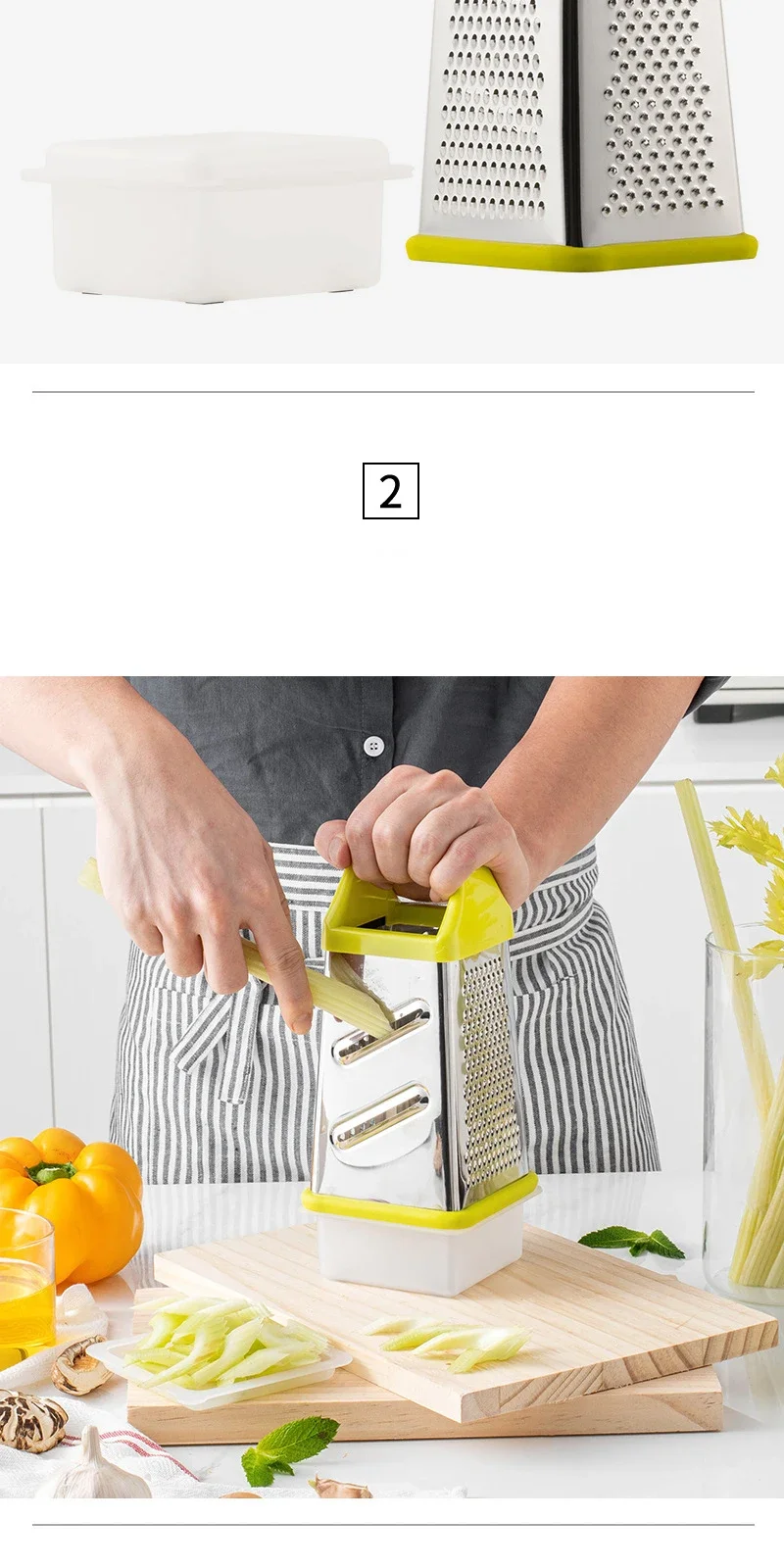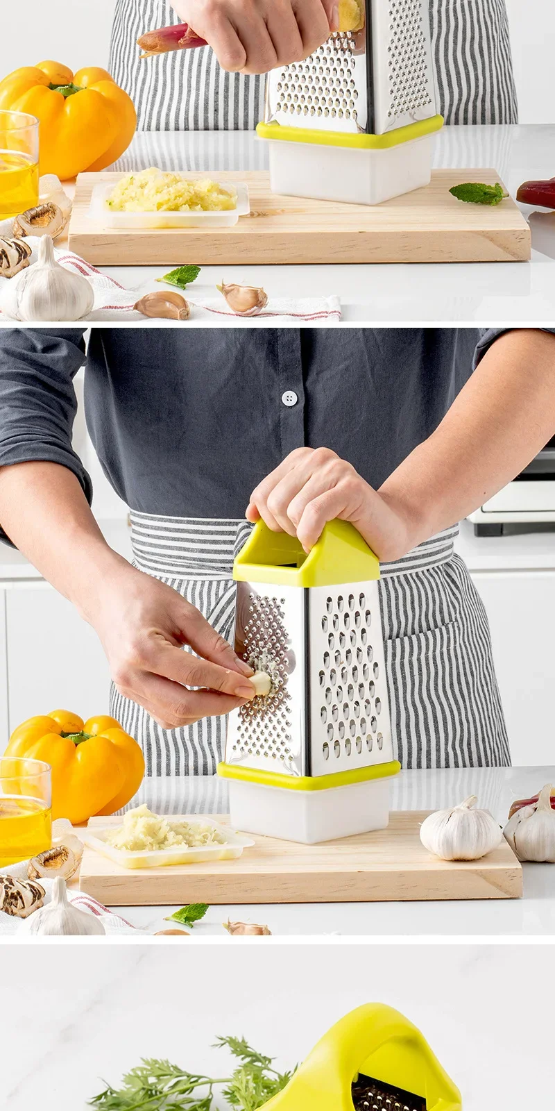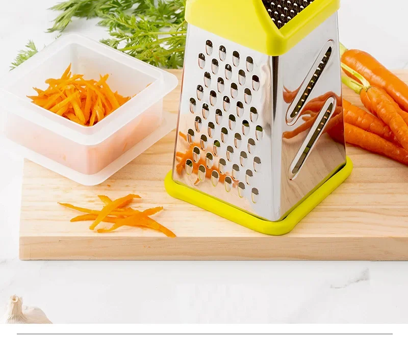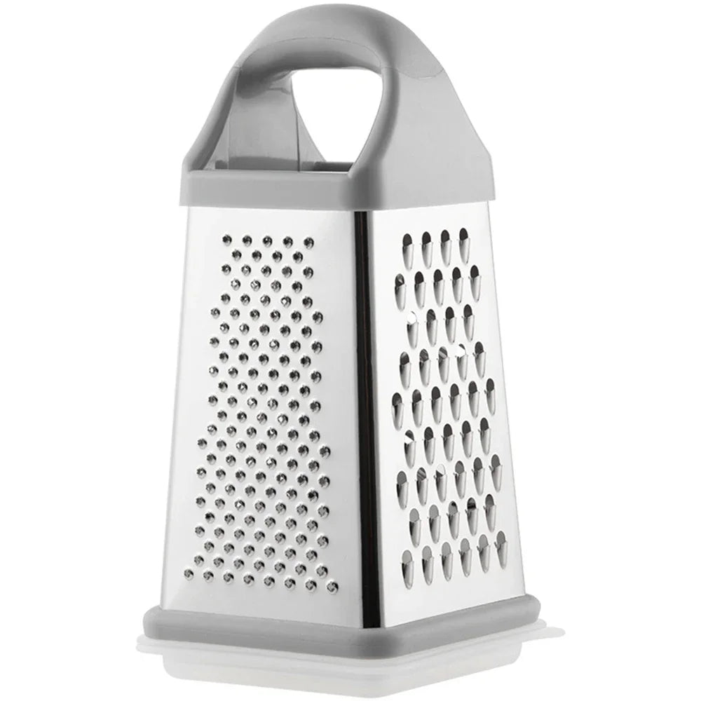 đŞ What is it - Meet the premium 4-Sided Stainless Steel Vegetable Grater! This versatile kitchen gadget effortlessly grates, slices, and chops all your favorite ingredients, from cheese and garlic to ginger and fruits, making meal prep a breeze.