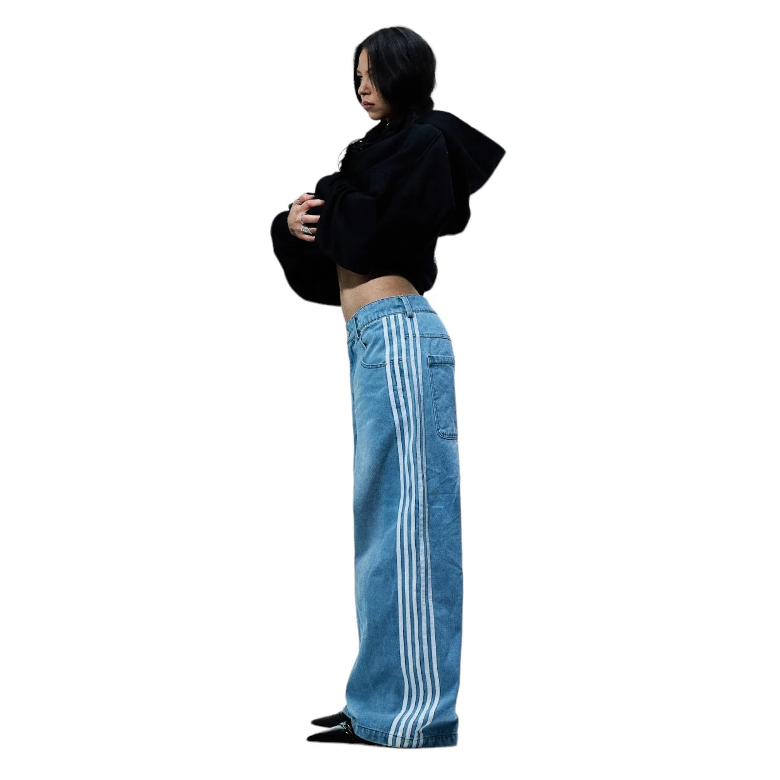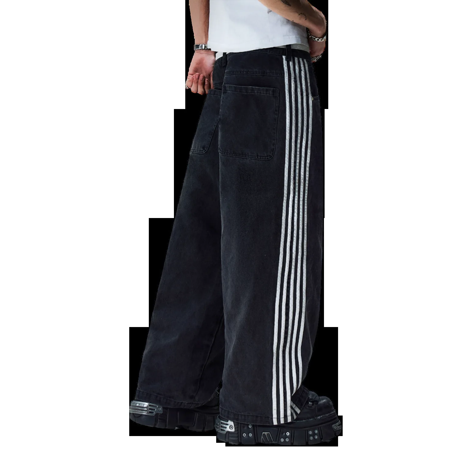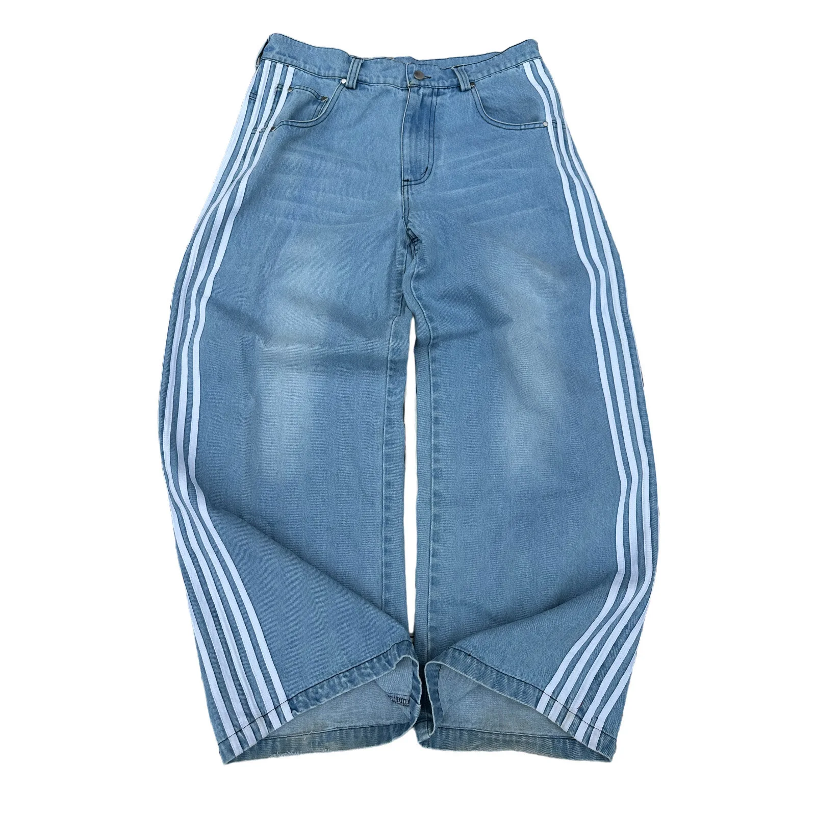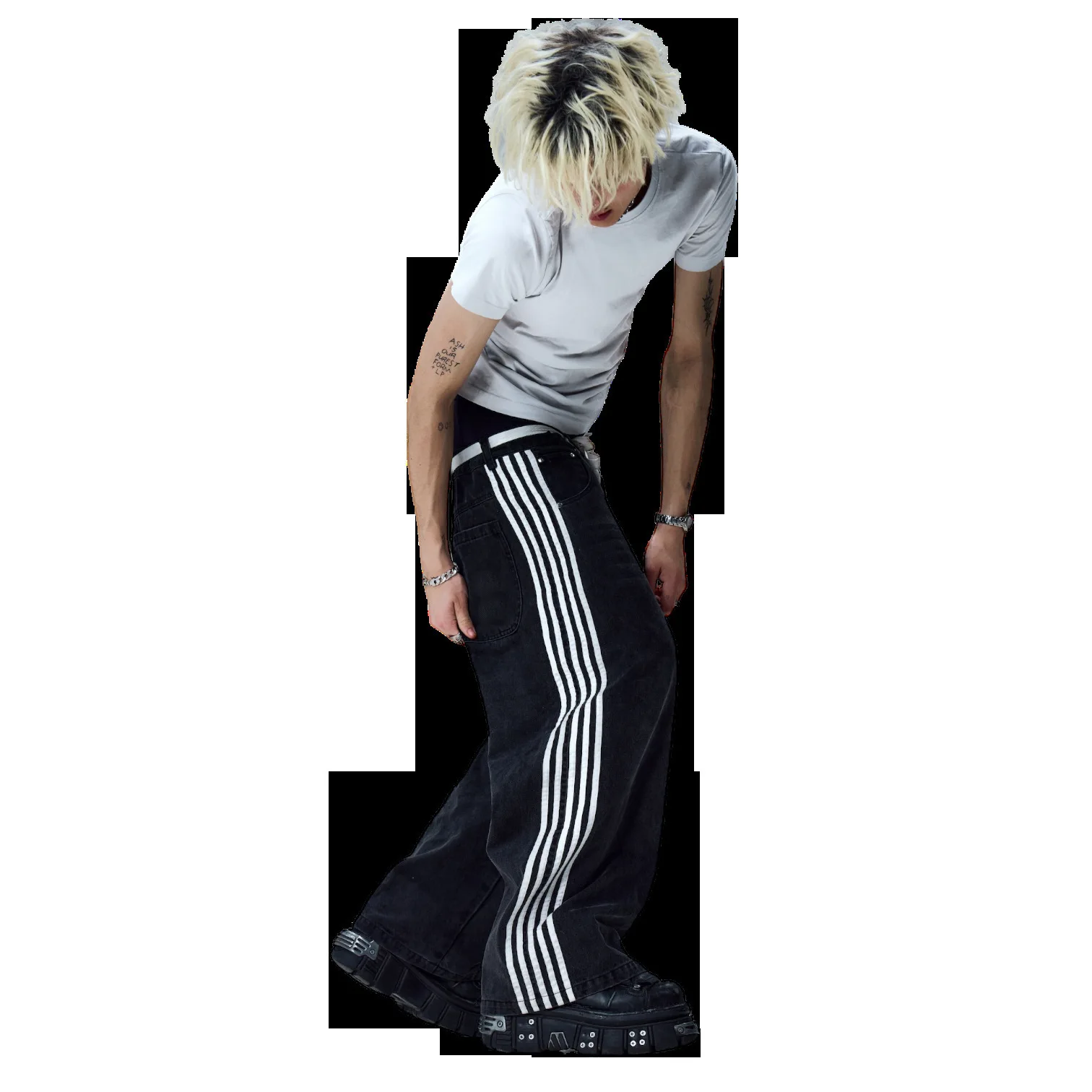 American retro street striped jeans y2k Harajuku style casual wide leg pants Gothic straight leg floor pants