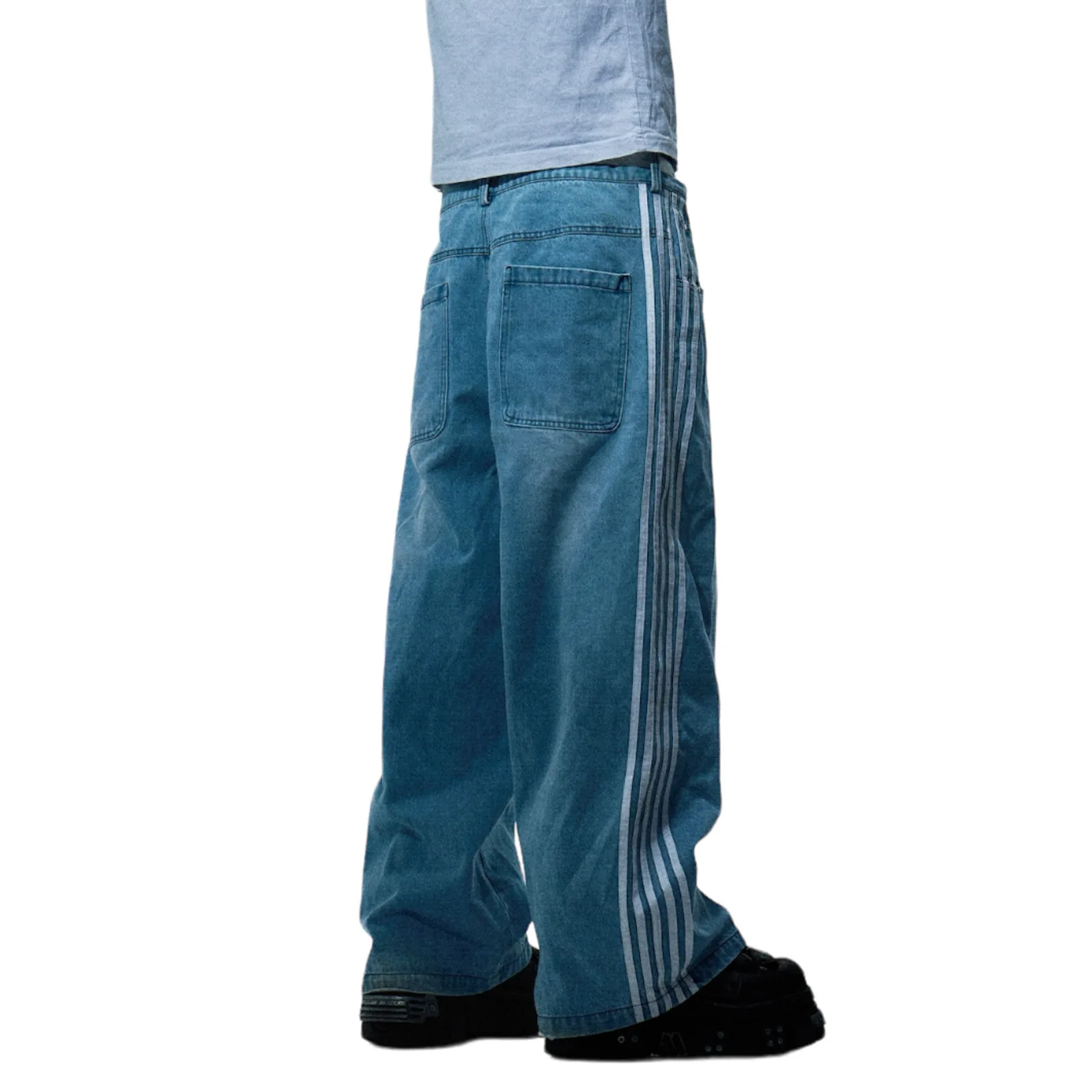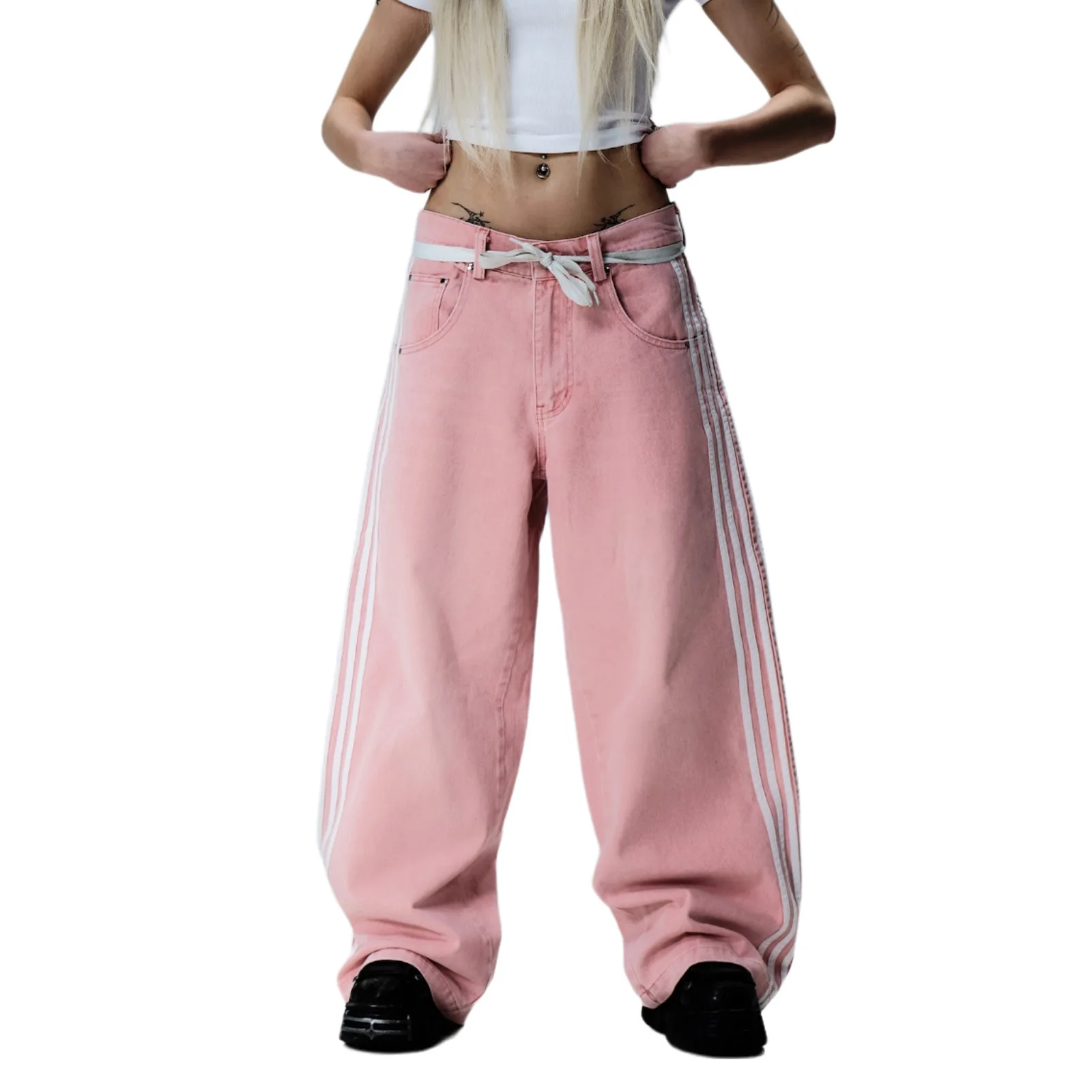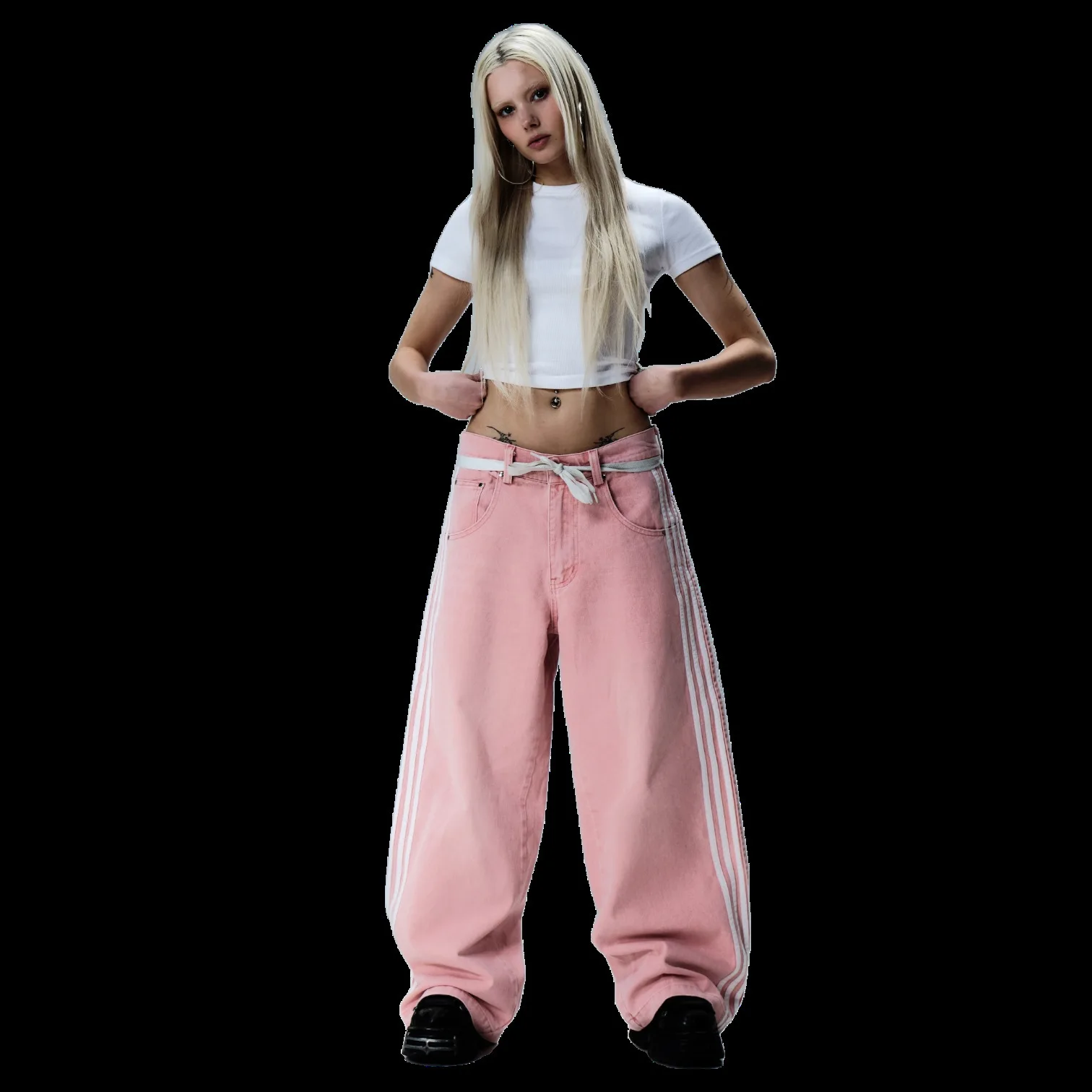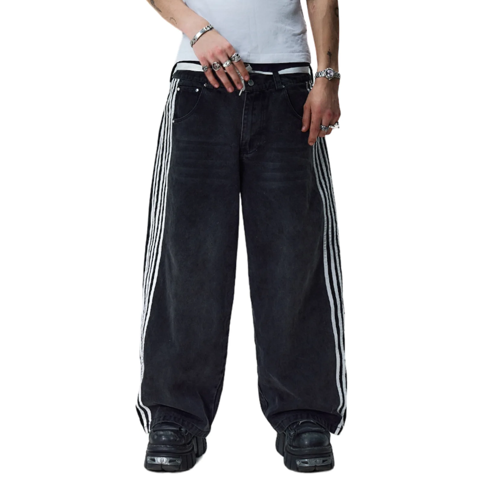 American retro street striped jeans y2k Harajuku style casual wide leg pants Gothic straight leg floor pants