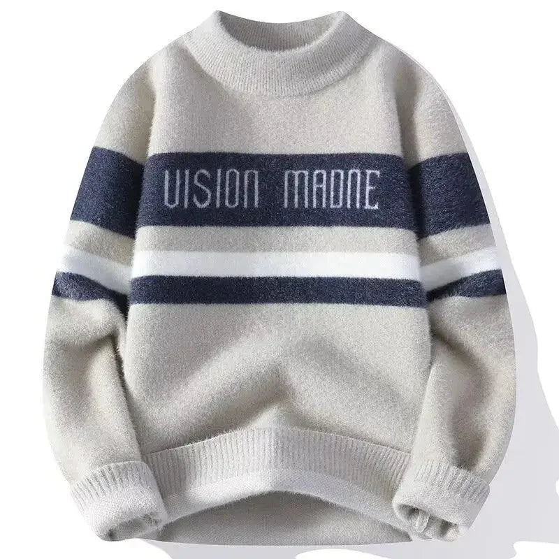 Autumn/Winter Thickened Sweater Men's Trendy Loose-Fit Japanese Knitted Top Winter Hong Kong Style Casual Line Clothes Jacket Ko