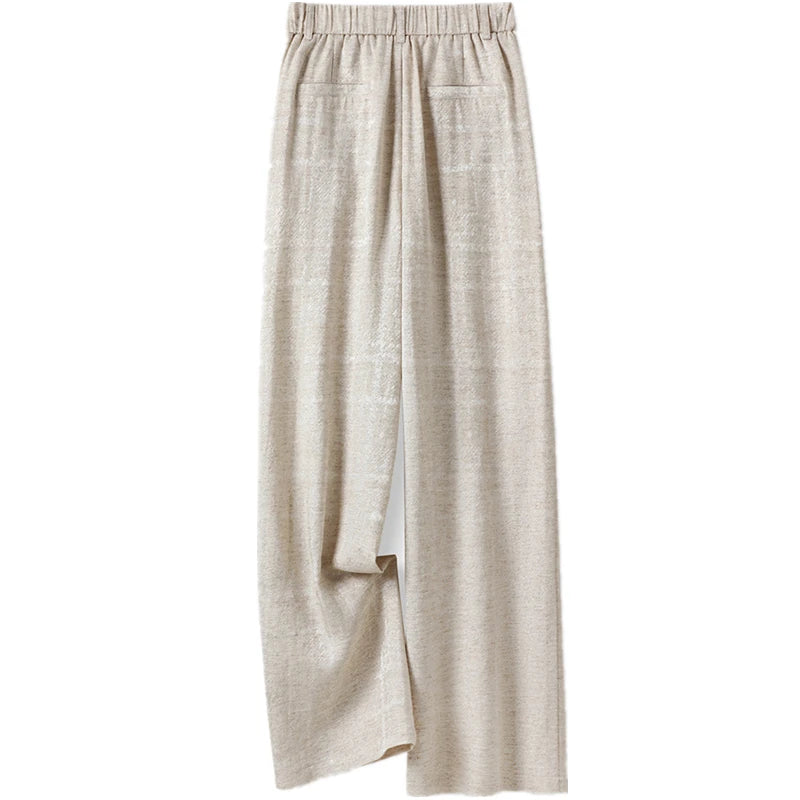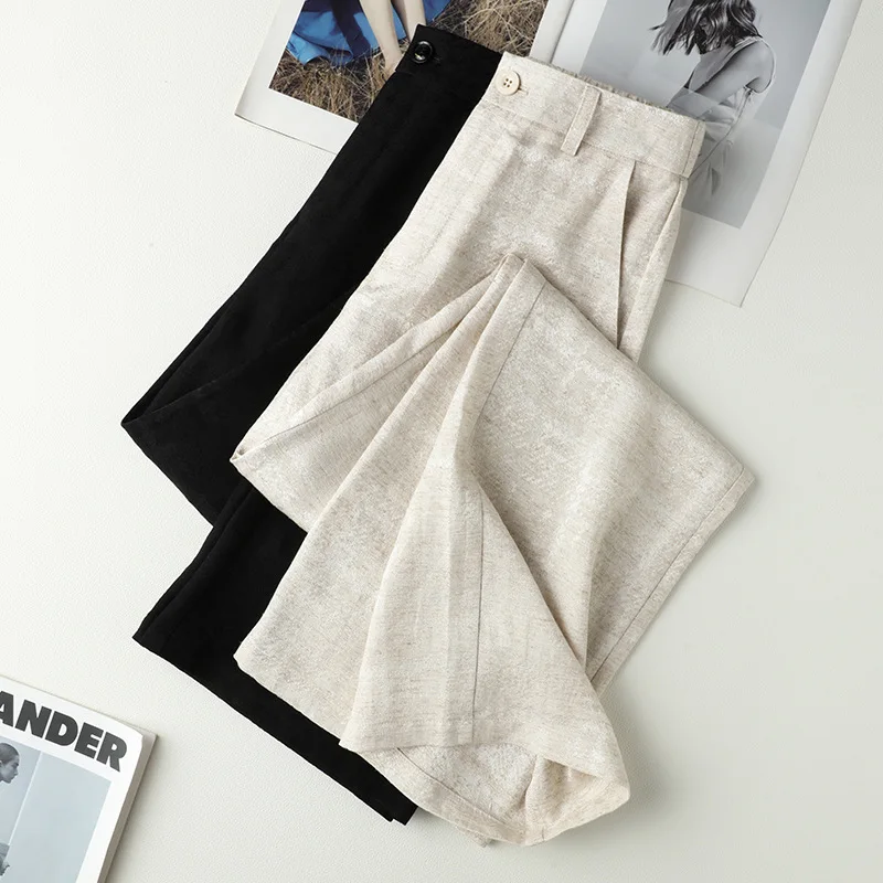 Upgrade your wardrobe with our Beige Wide Leg Stretch Linen Pants, designed for the fashion-forward woman. These casual trousers are the perfect fit for summer and autumn, bringing comfort and style to your everyday looks.