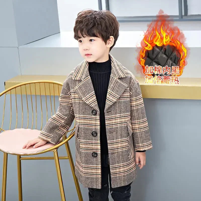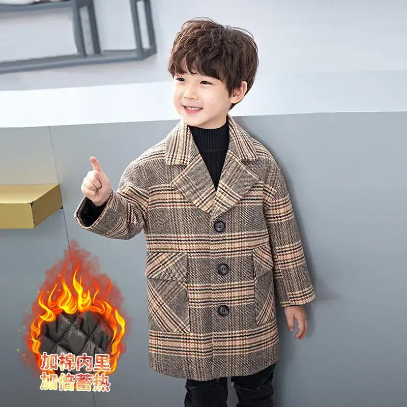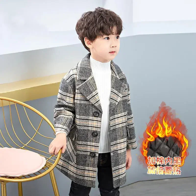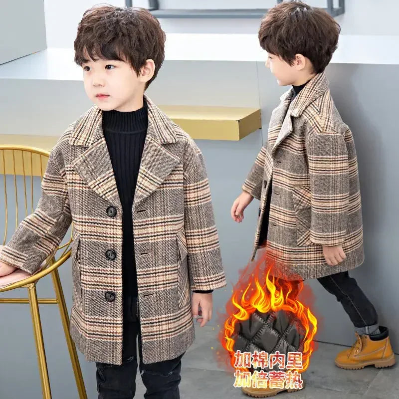 Boy'S Tweed Coat Foreign Style Wool Coat Winter 2022 Autumn And Winter New Small Suit Children'S Clothes Children'S Baby