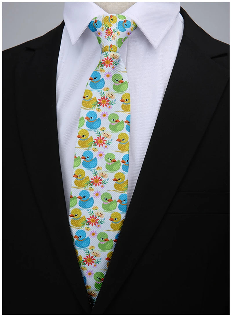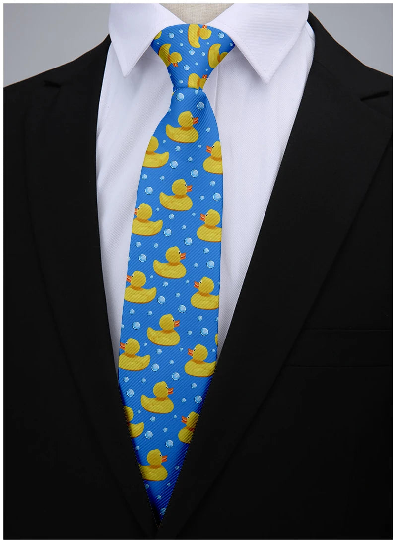 Cartoon duck print men's tie fashion casual 8cm yellow novelty tie men's unique accessories wedding party business gifts