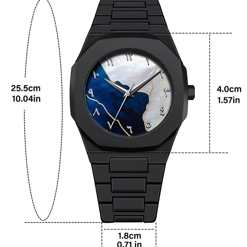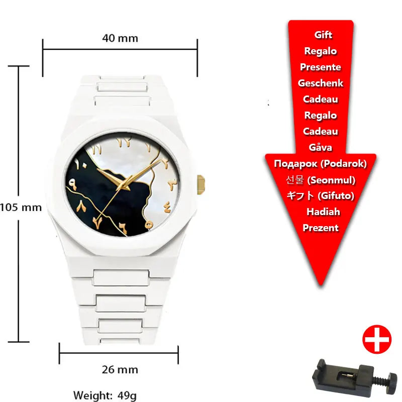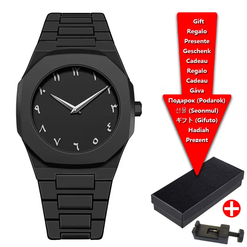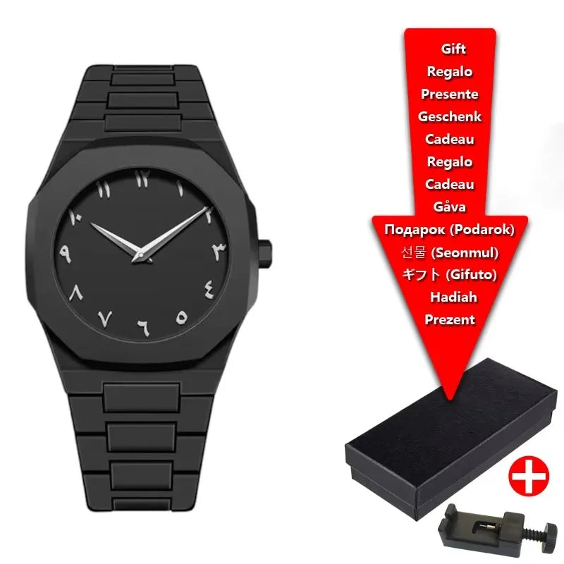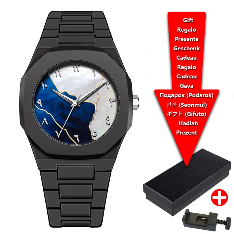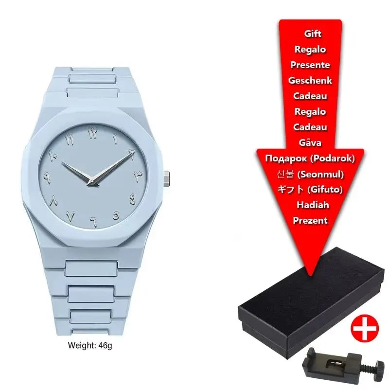 Classic Middle Eastern Arabic Numeral Dial Blue Gold Quartz Watch for Men's Casual TPU Plastic Waterproof Watch Can Customize