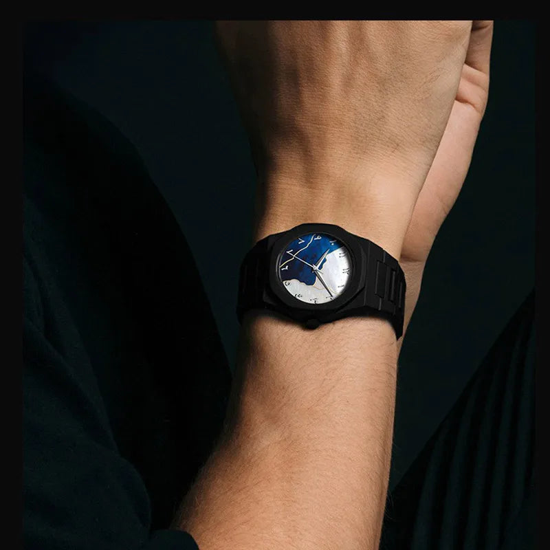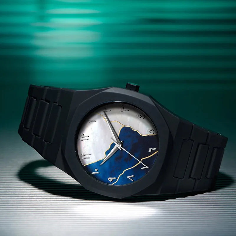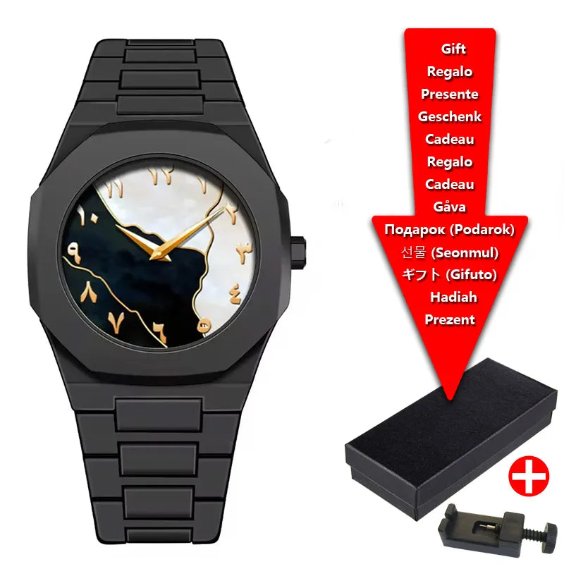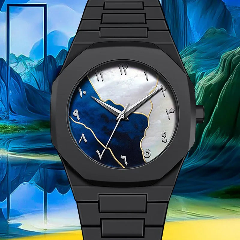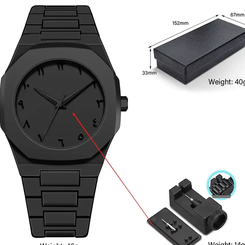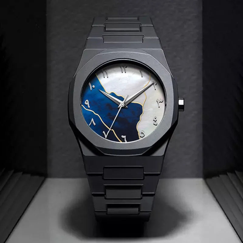 Classic Middle Eastern Arabic Numeral Dial Blue Gold Quartz Watch for Men's Casual TPU Plastic Waterproof Watch Can Customize