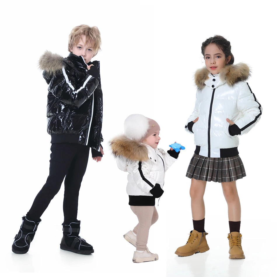 Clearance sale Fashion down jacket for boys girls filling duck down coats nature fur glossy wind-resistant water-repellent