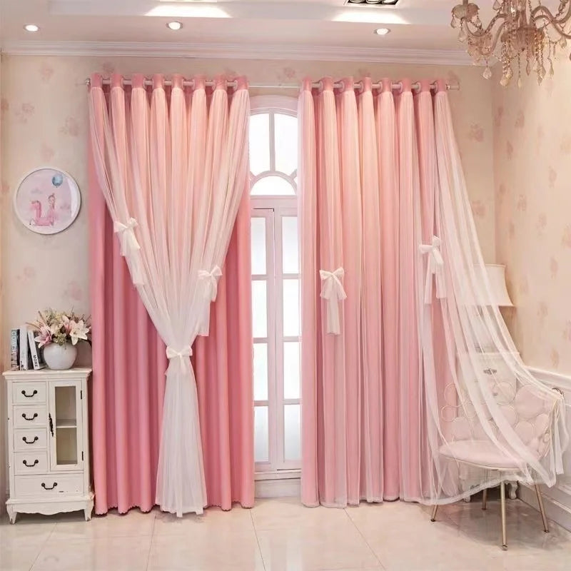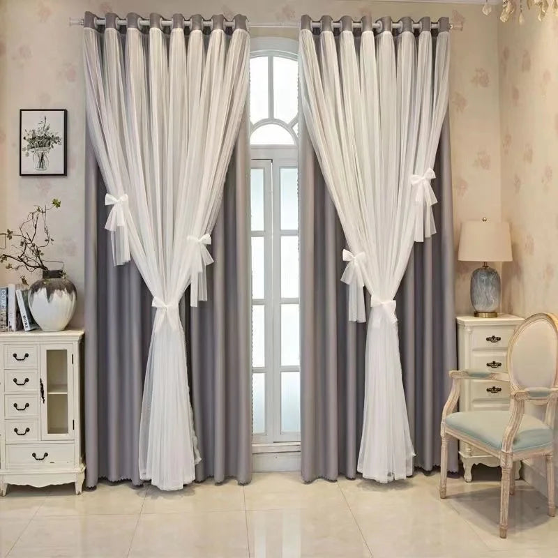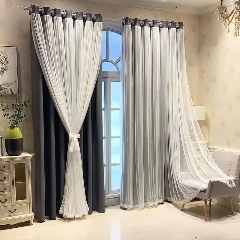 Double Layer Blackout Curtains Finished Wear Rod Lace Gauze and Cloth Curtains for Balcony Living Room Bedroom