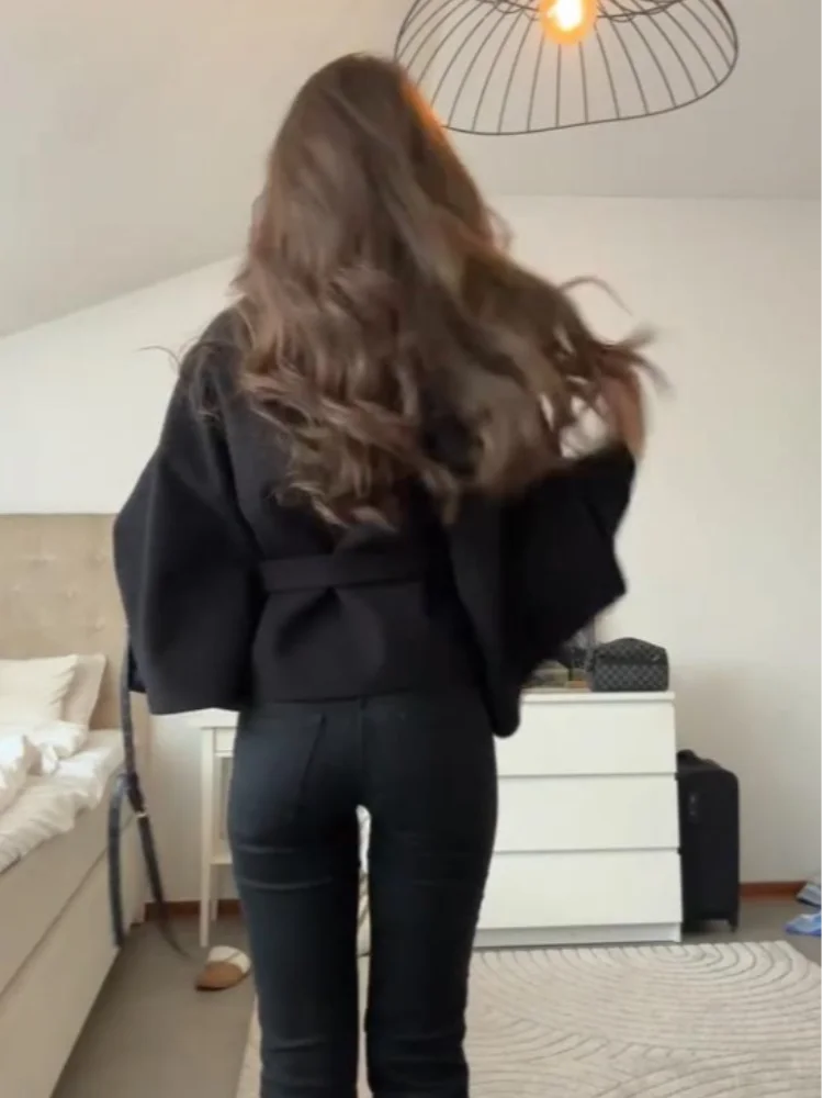 Elegant Stand Women's Coat Solid Long Sleeve Button Belted Lace-Up Cardigan Jacket 2025 Autumn Winter Outerwear Female Tops