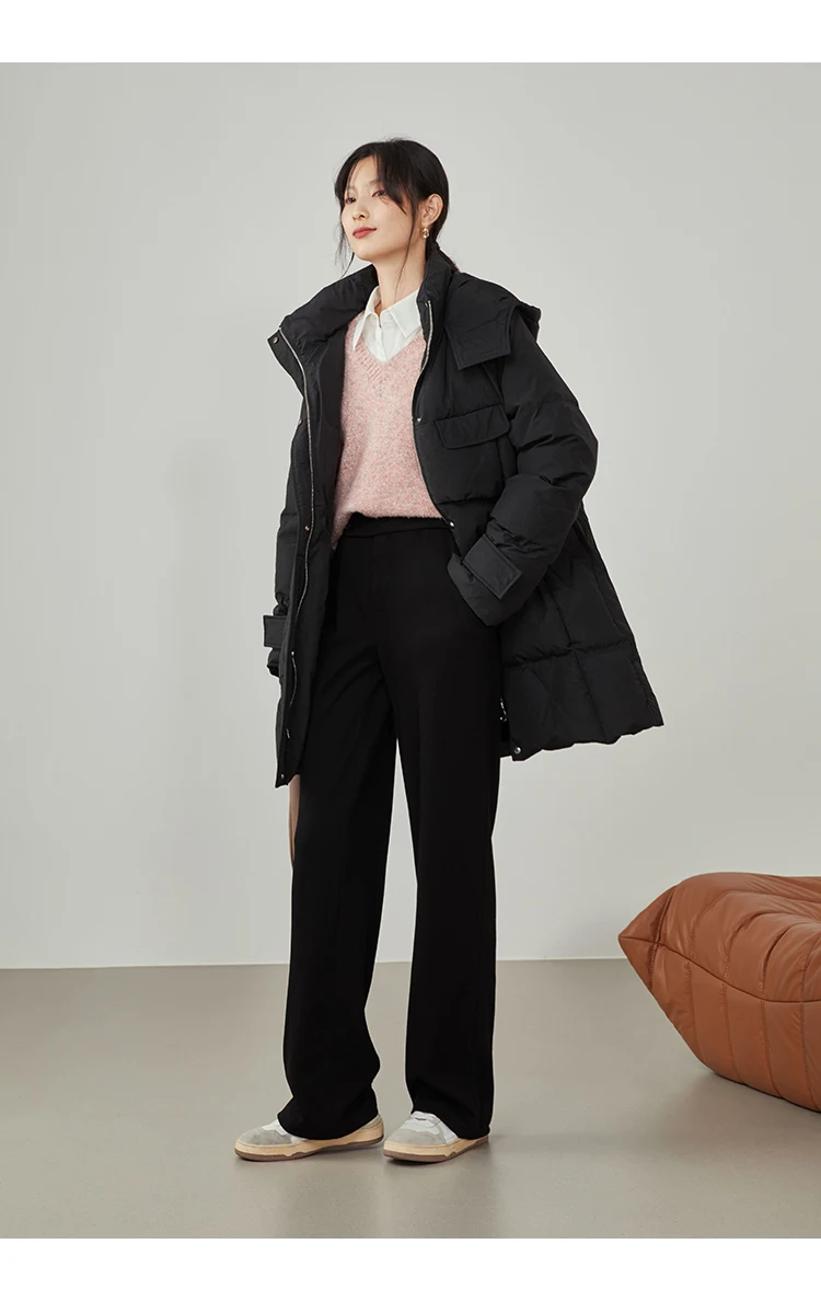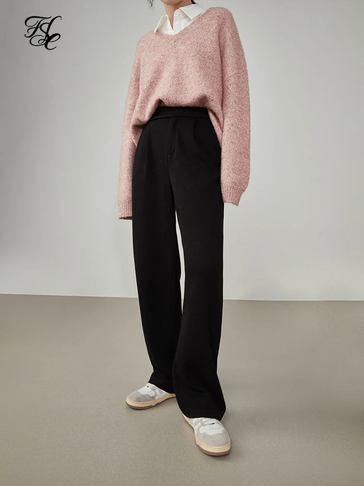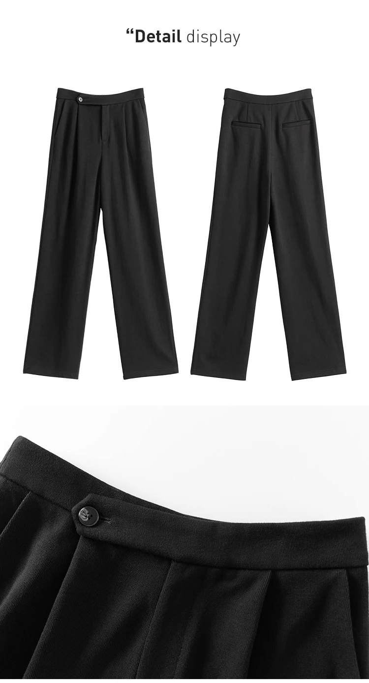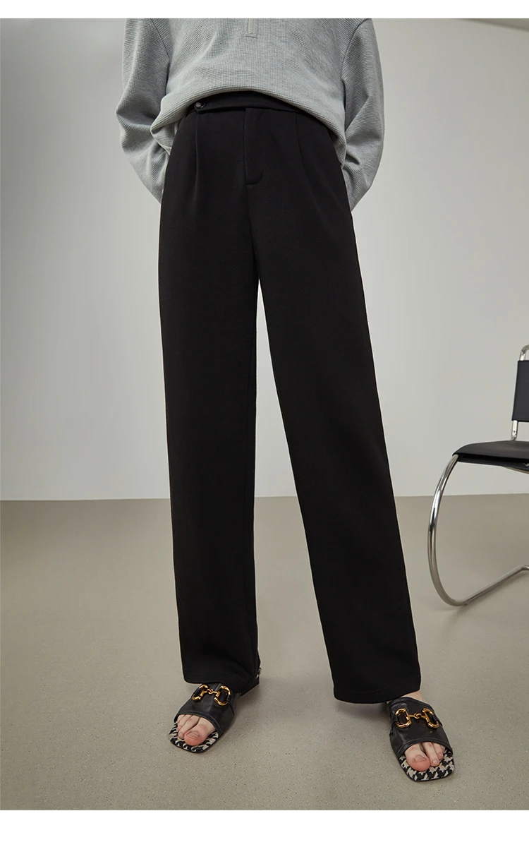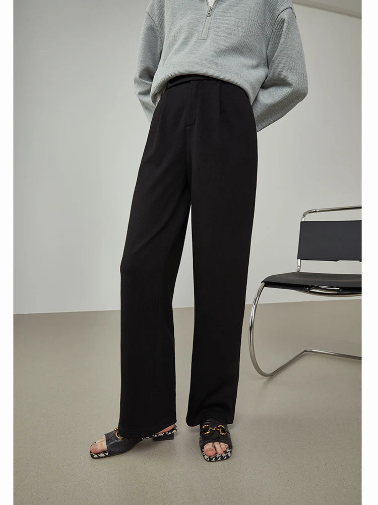 FSLE Women Straight Loose Pants Fall winter Drape High-waisted Wide-leg Pants Women Black Thin All-match Casual Trousers
