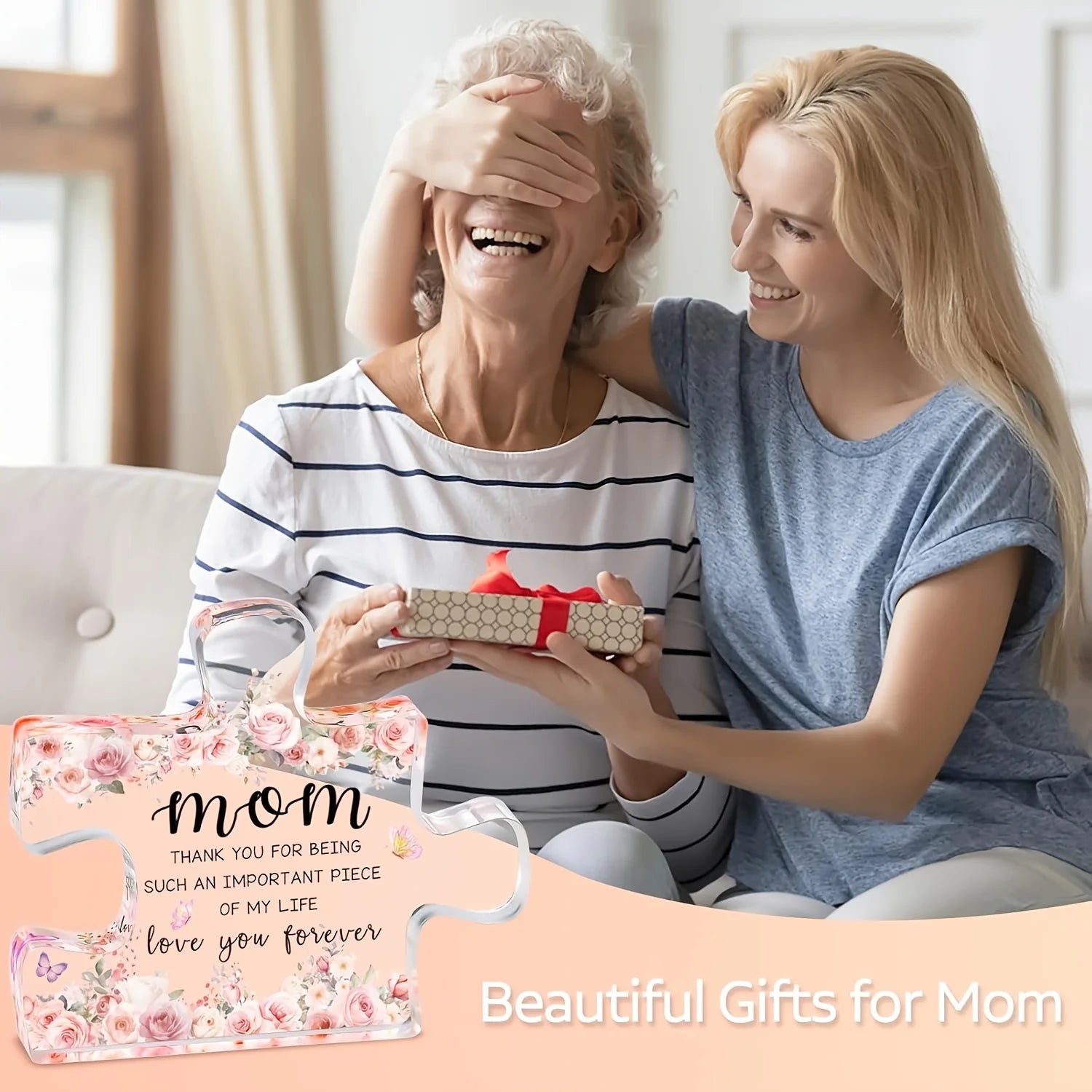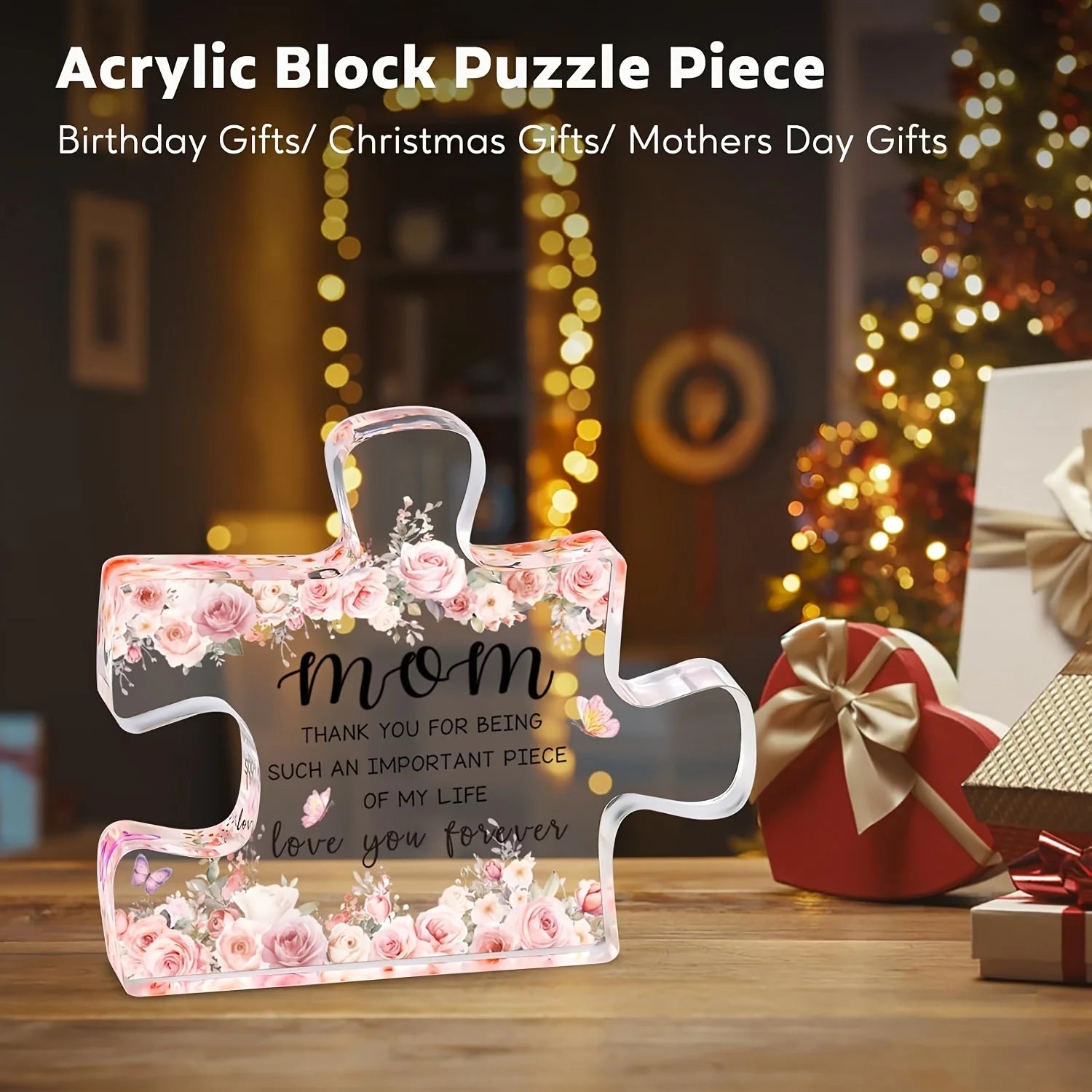 Gifts for Mom from Daughter, Son - Christmas, Mothers Day, Birthday Gifts for Mom, Unique Acrylic Block Puzzle Piece Gift