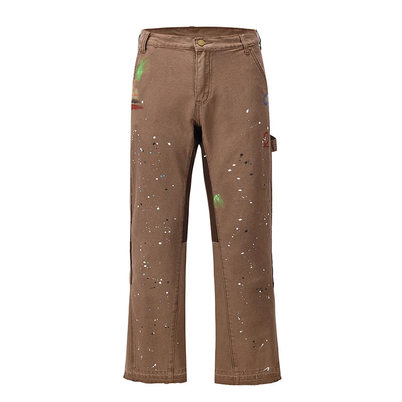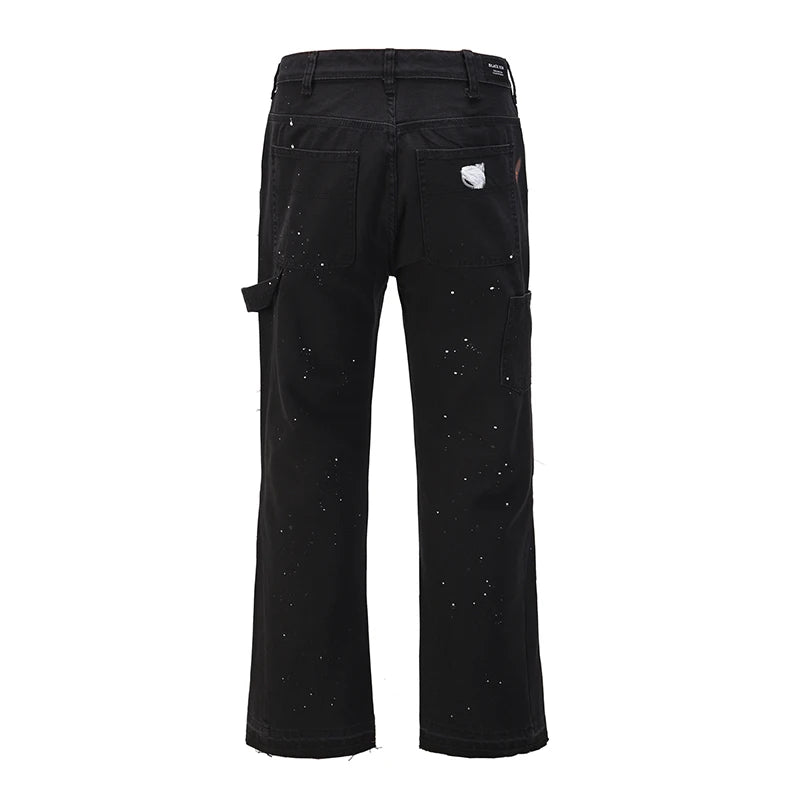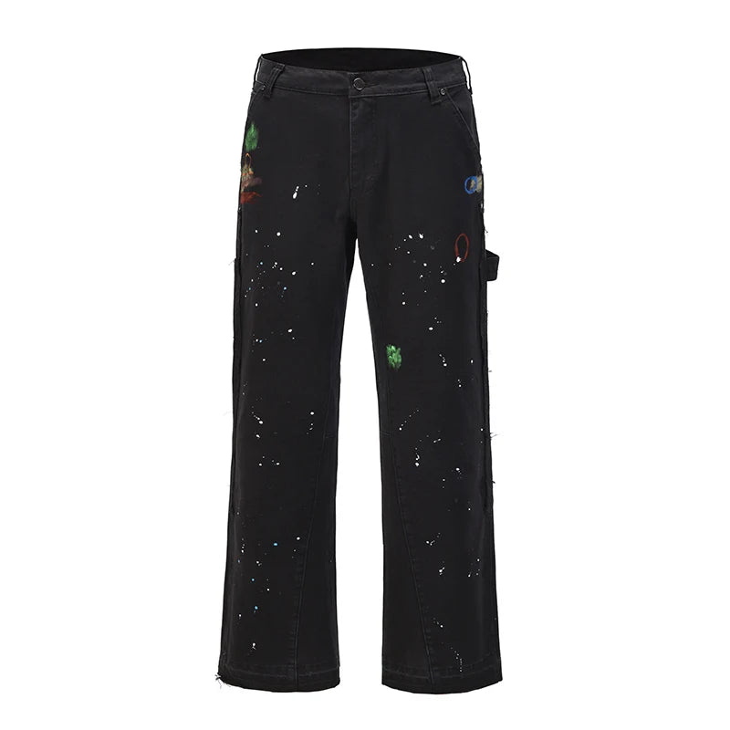 Graffiti Ink Painted Wide Leg Flare Pants Mens Streetwear Straight Casual Jeans Harajuku Washed Retro Loose Denim Trousers