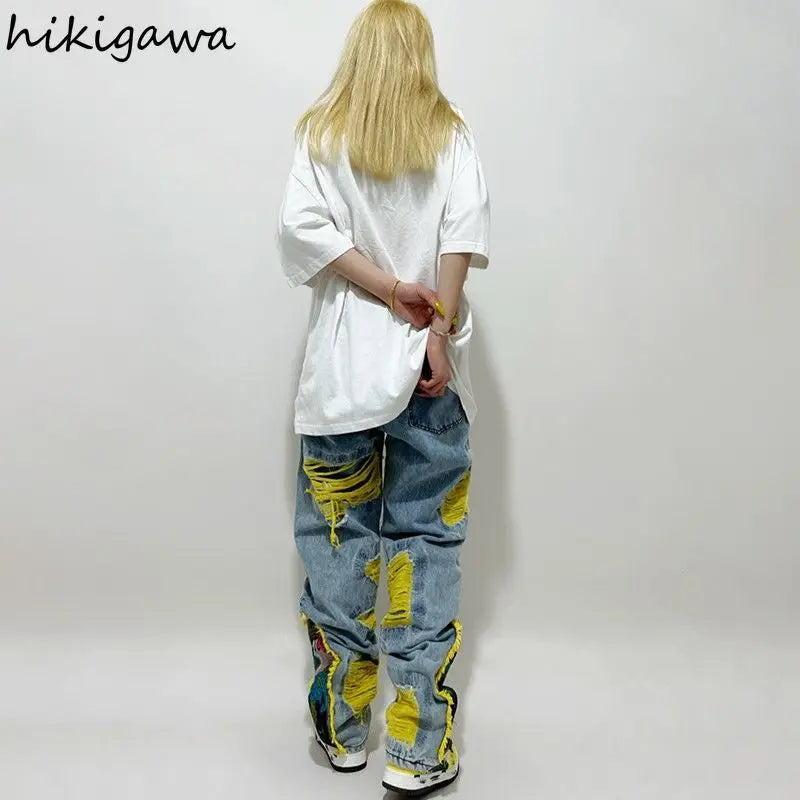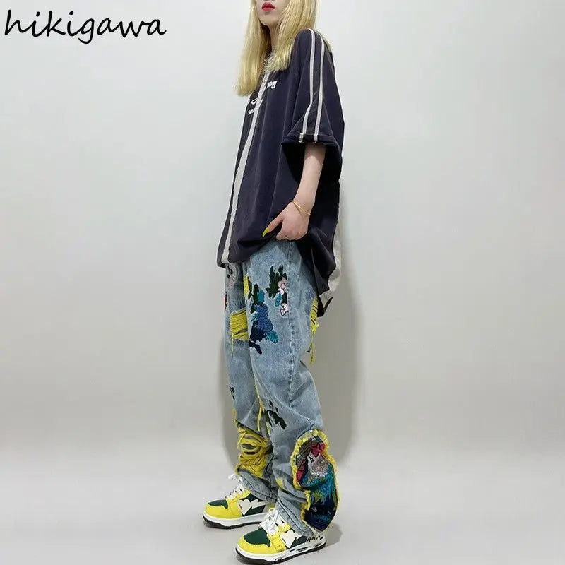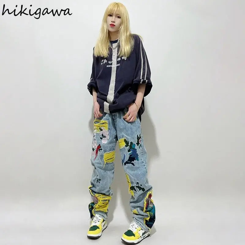 Harajuku Y2k Wide Leg Pants for Women Streetwear Hip-hop Fashion Casual Jeans Pantalon Femme High Waist Straight Denrm Trousers
