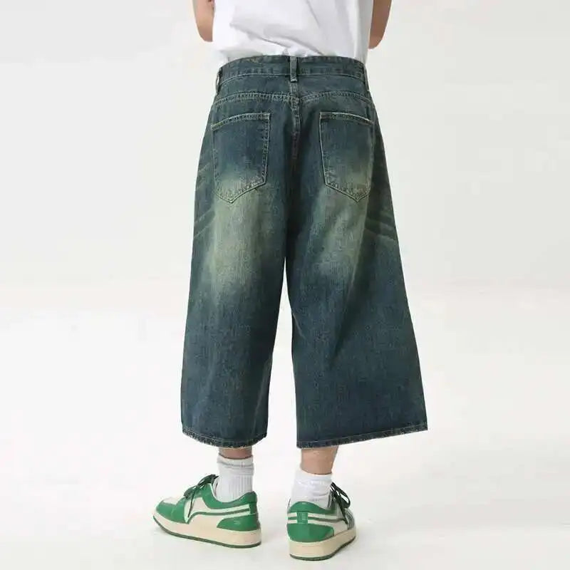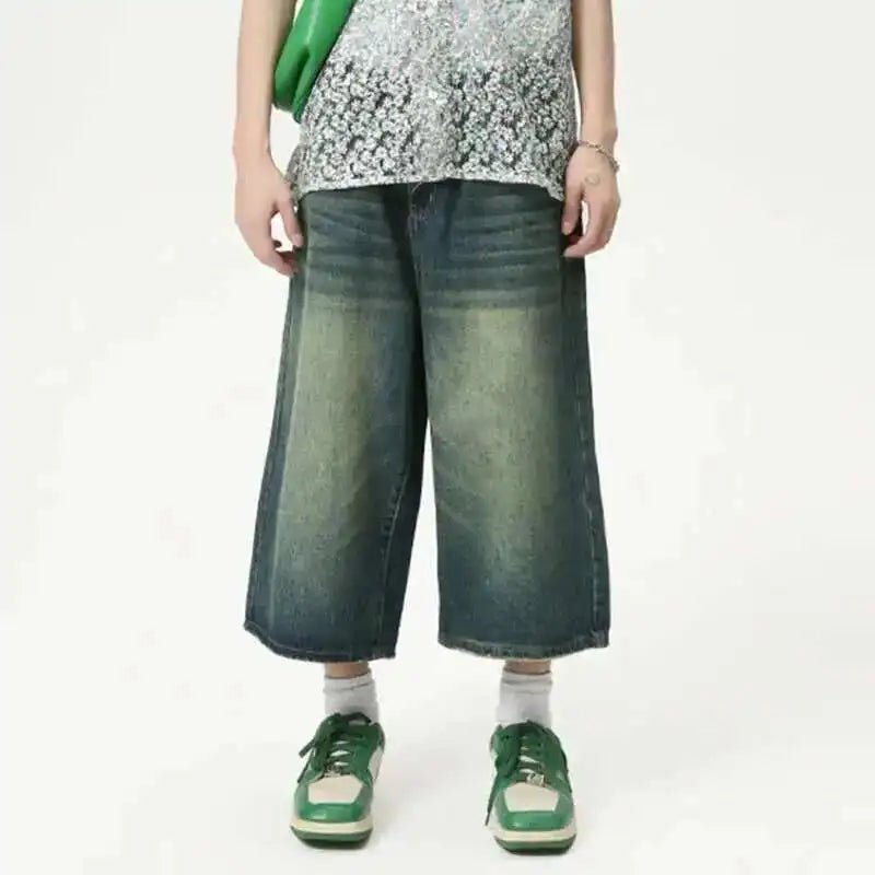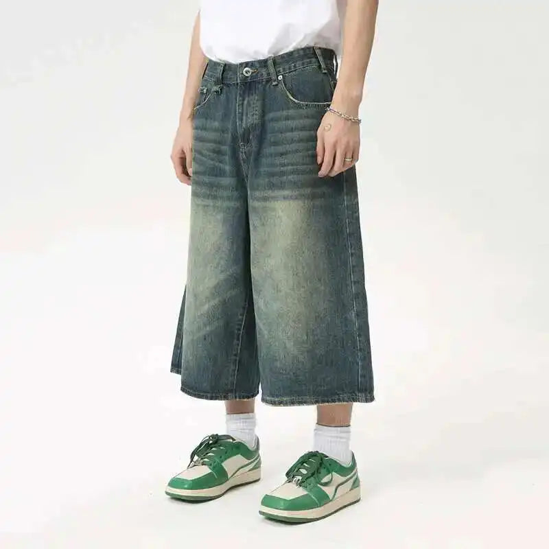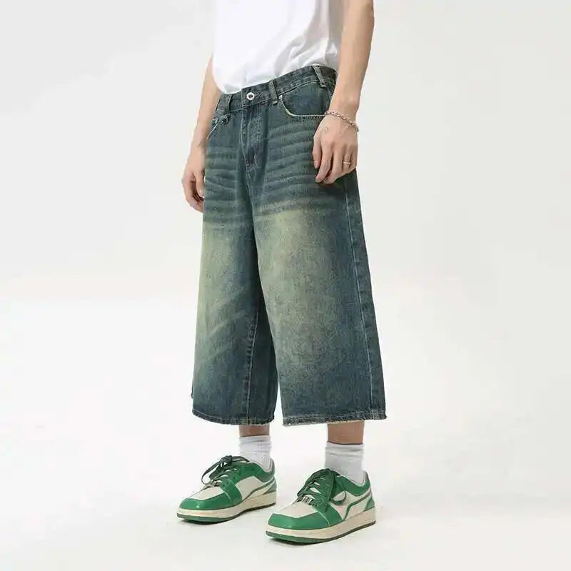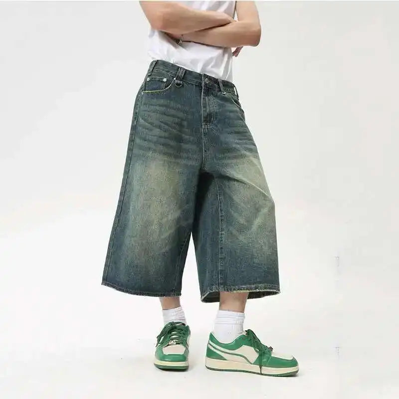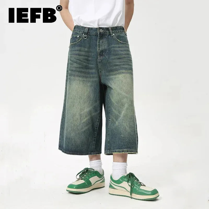 IEFB High Street Calf-Length Pants Denim Men's Shorts Straight Zipper Causal Wide Leg Male Trousers New Chic Spring 2025 8825