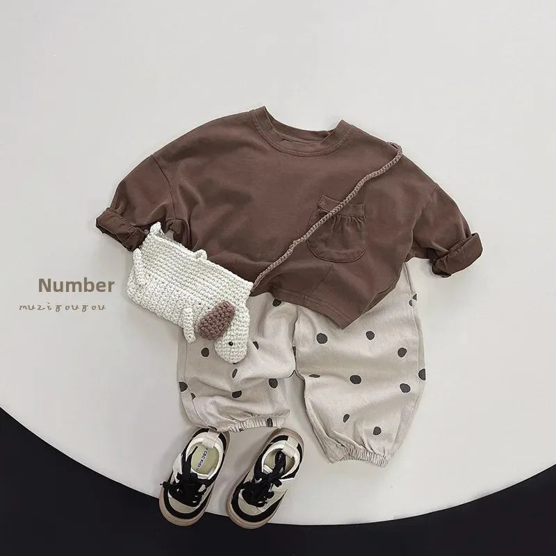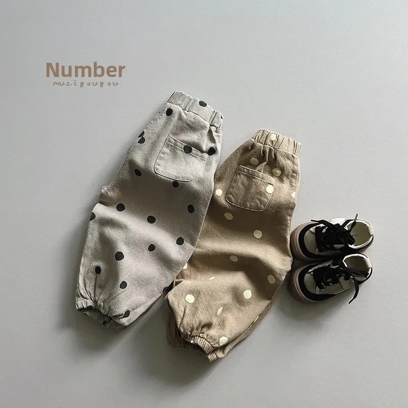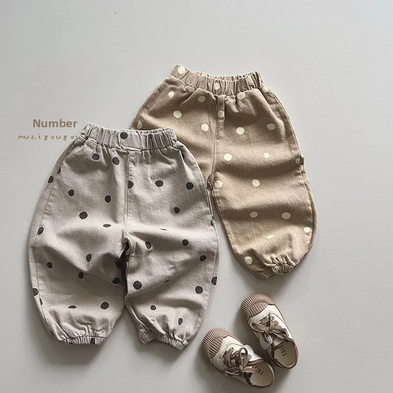 Loose Casual Pants for Boys And Girls Spring Autumn Outerwear Korean Polka Dot Wide Leg Children's Loose Trousers