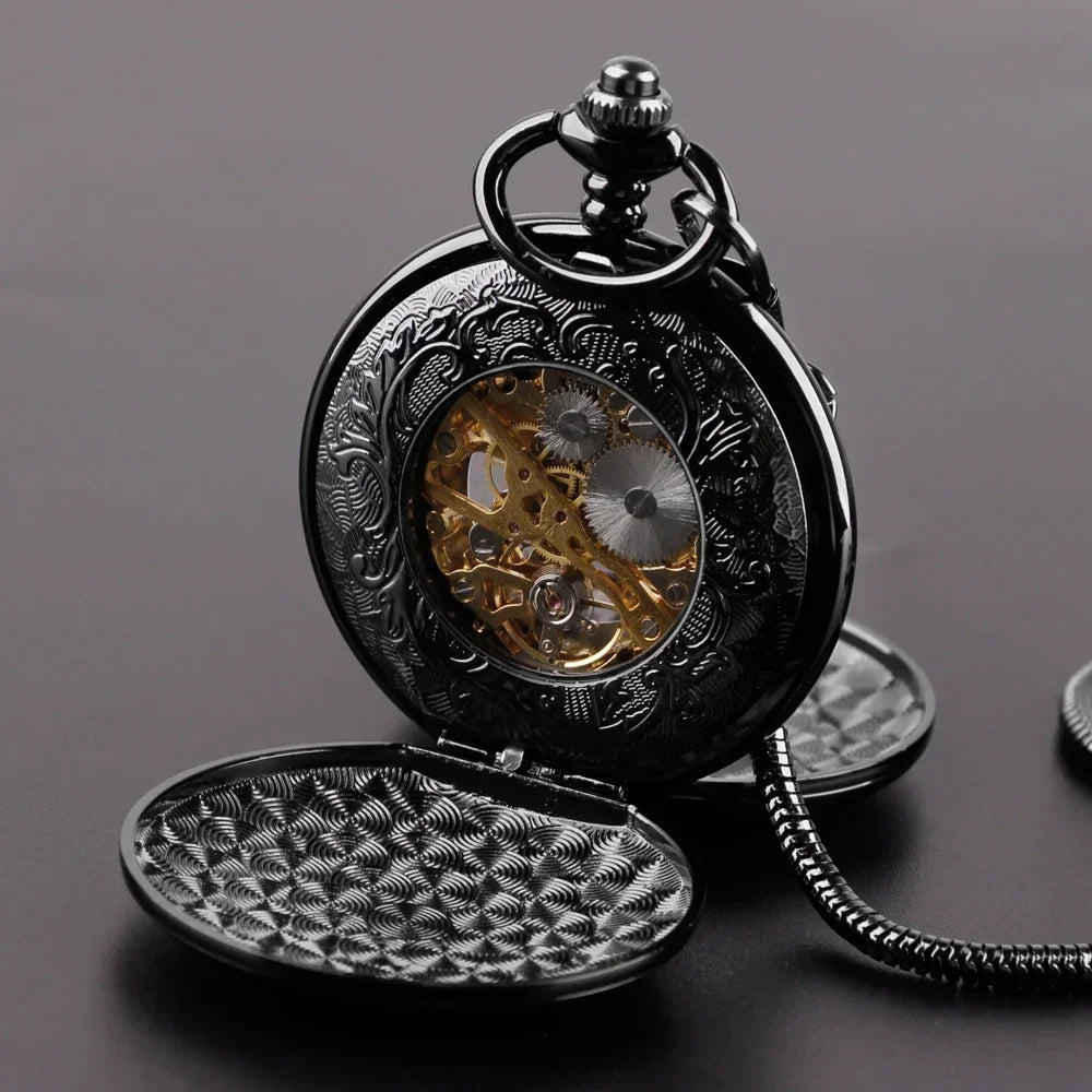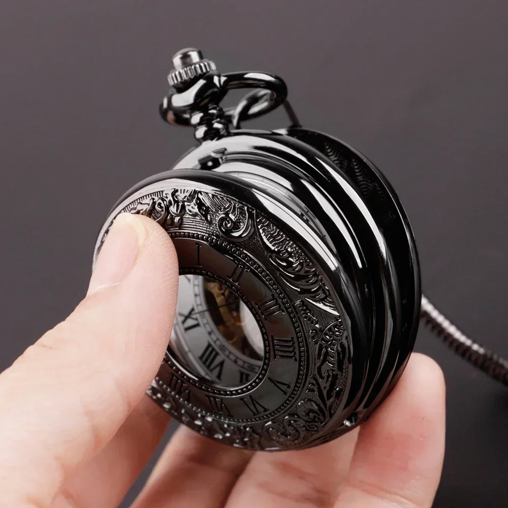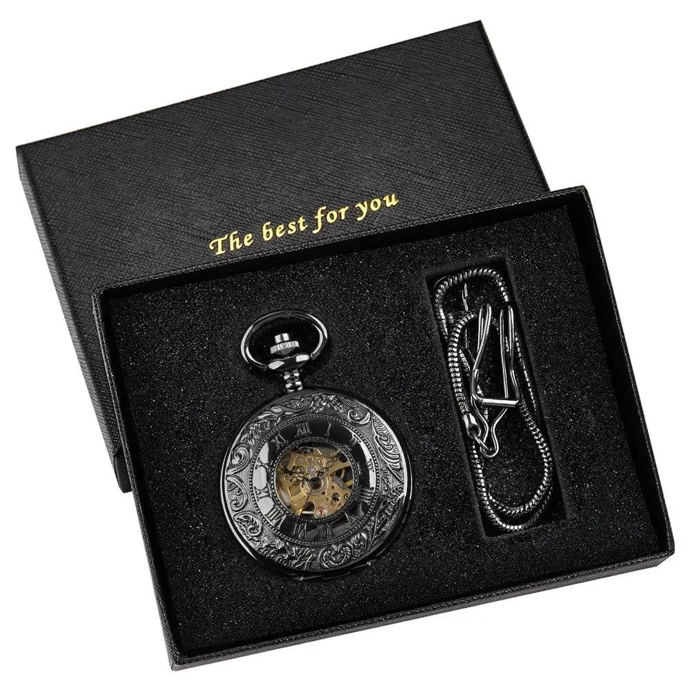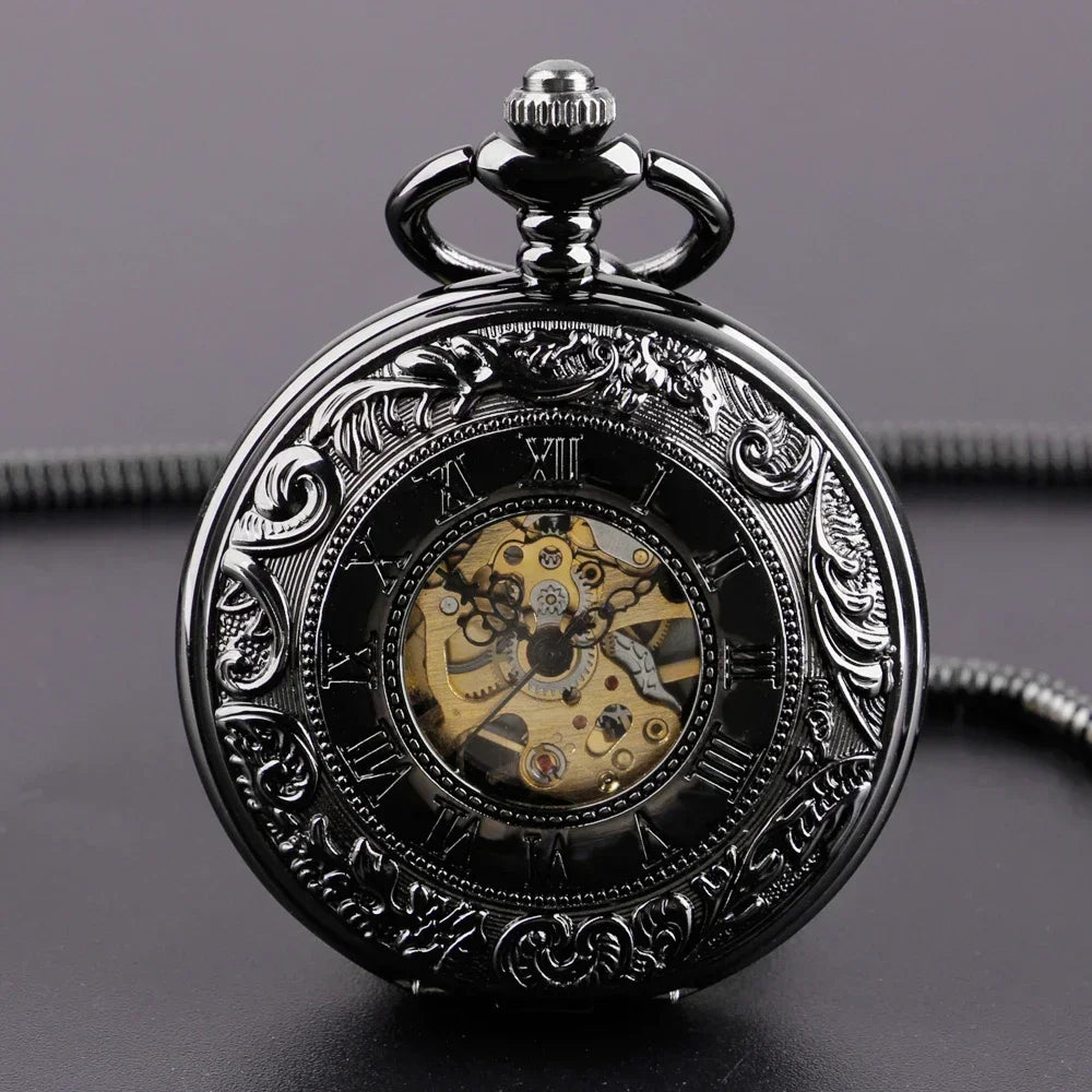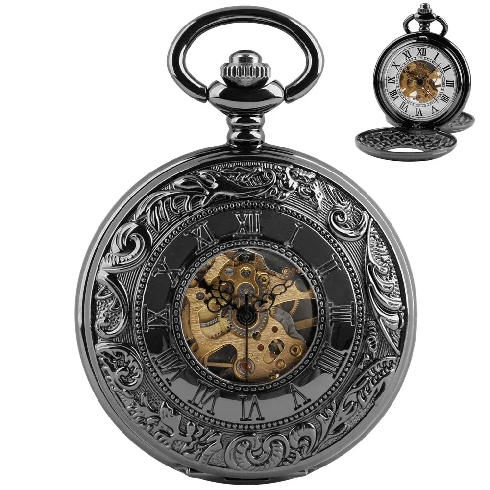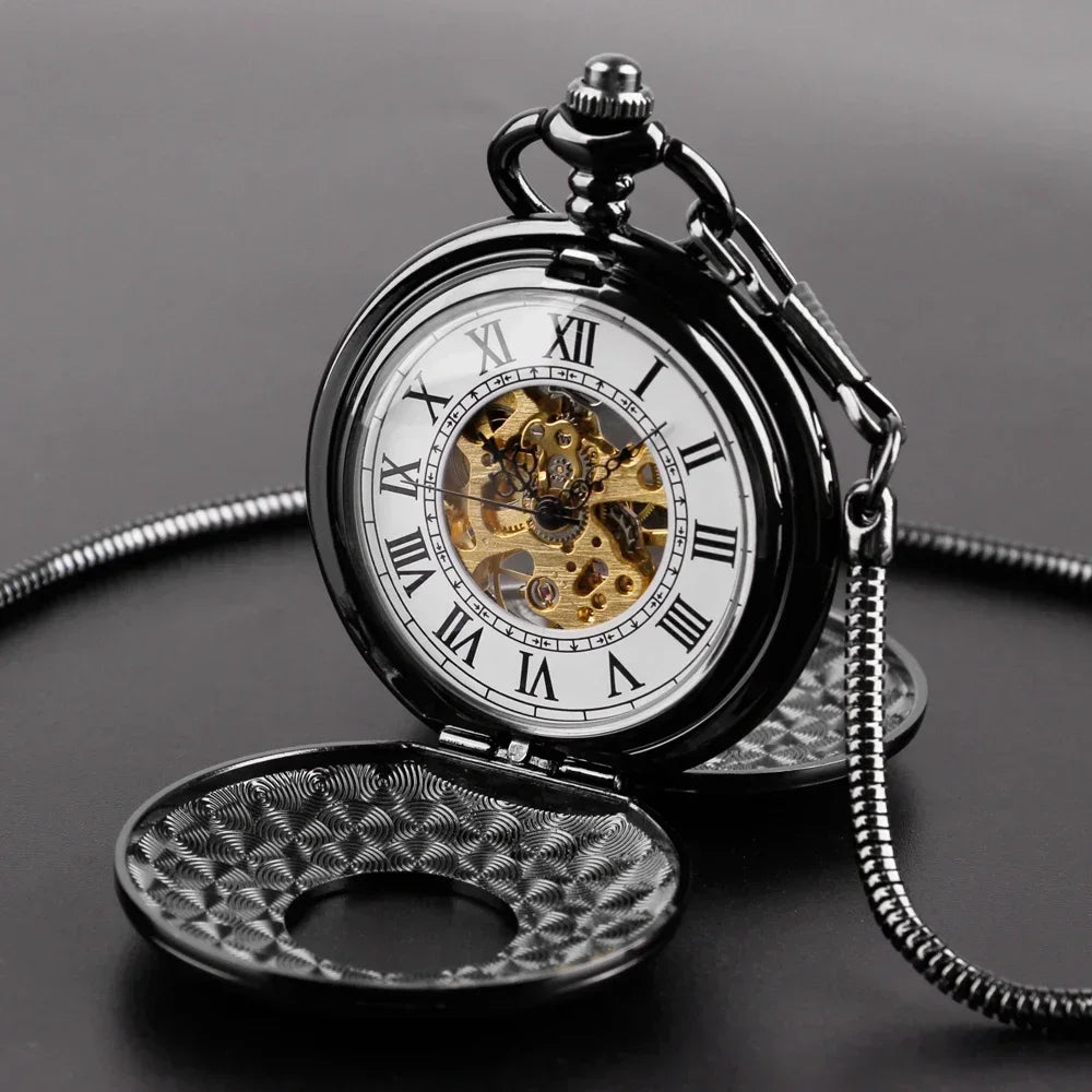 Luxury Roman Numeral Manual Mechanical Pocket Watch Vintage 2 Sided Case Necklace Pendant Clock Men's Gift Hand Wind Watch Gifts