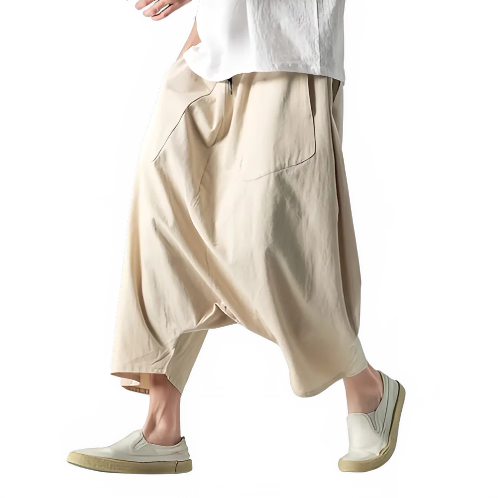 Elevate your summer wardrobe with our Men's Plus Size Casual Harem Pants. Made from a premium blend of cotton and linen, these vintage-inspired wide-leg trousers offer ultimate comfort while maintaining a stylish edge. Designed for the modern man, they feature an elastic waist for the perfect fit and a loose silhouette that enhances breathability.