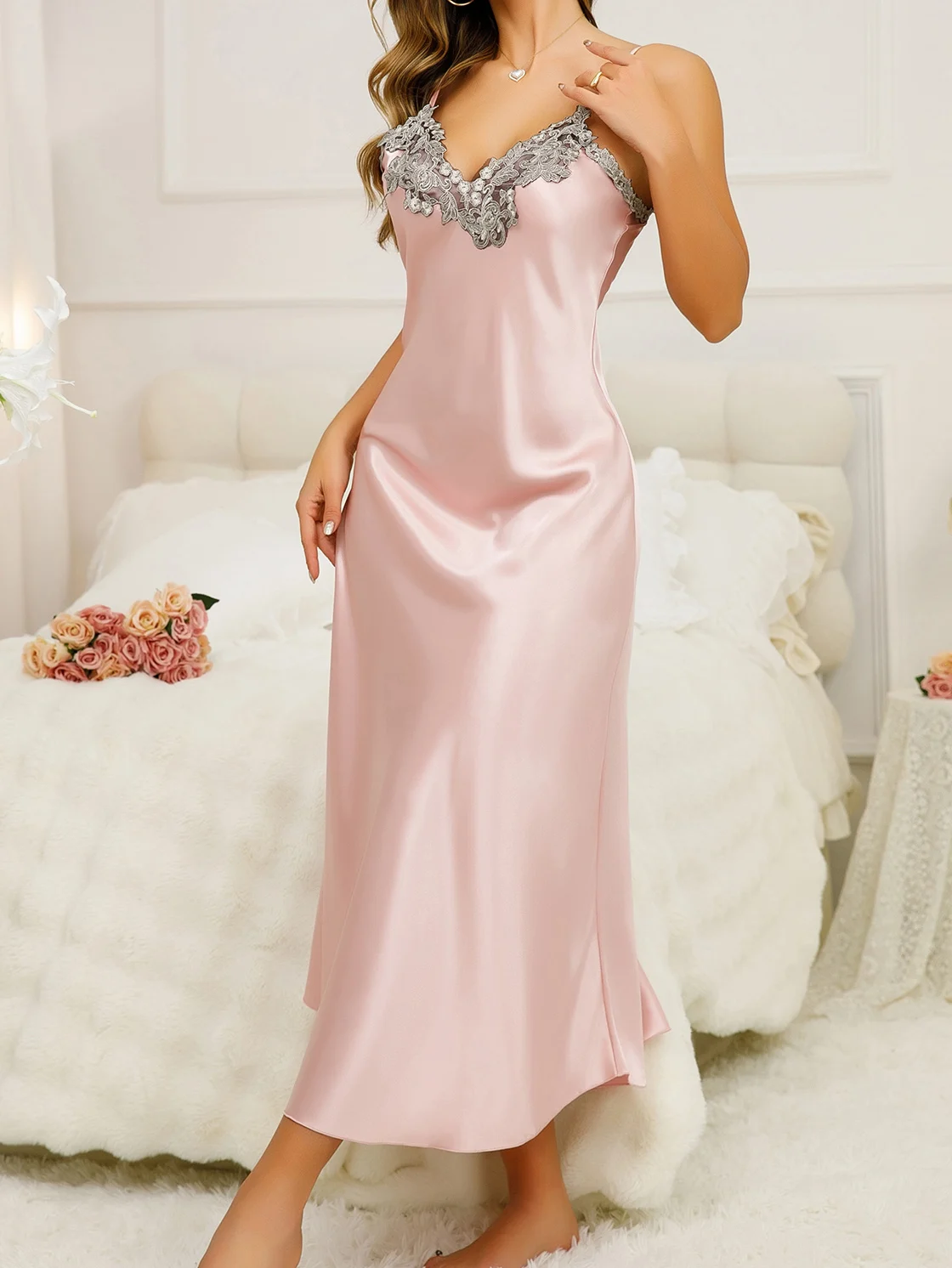 New pajama lady lace sexy V-neck long slip nightdress pajamas home wear