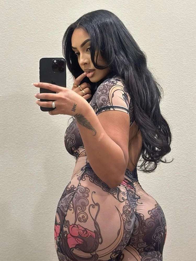 Nibber Summer Trend Playsuit Women Mesh See Through Peach Buttocks Shorts Sleeve Backless Aesthetic Print Midnight Club Romper