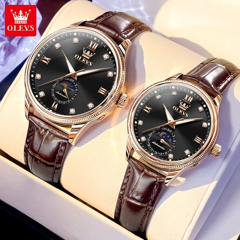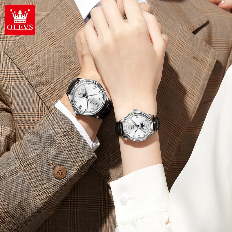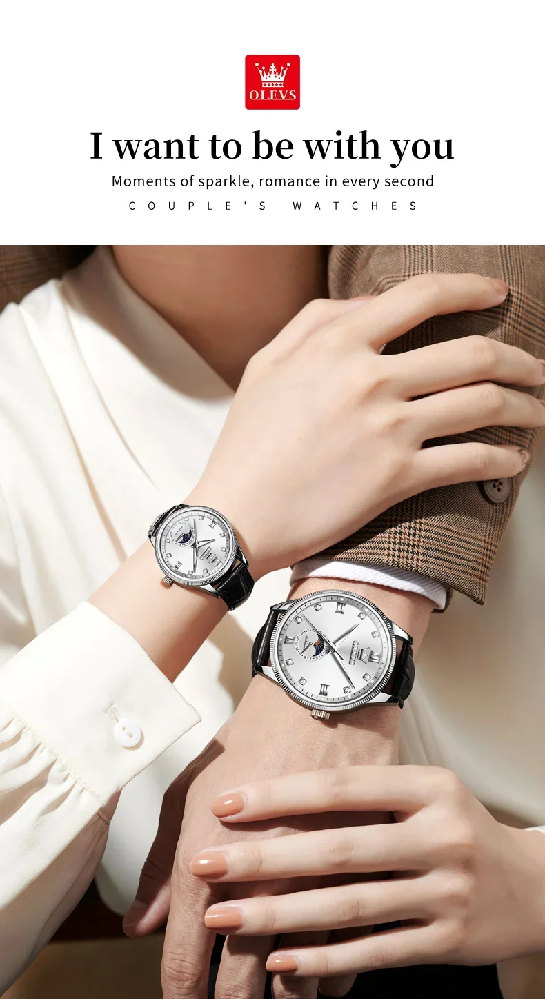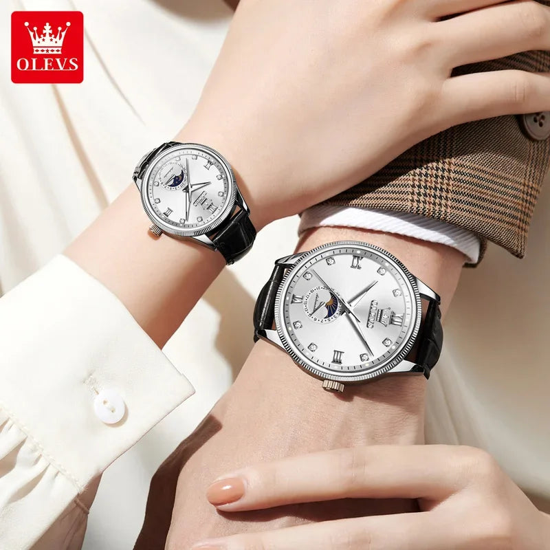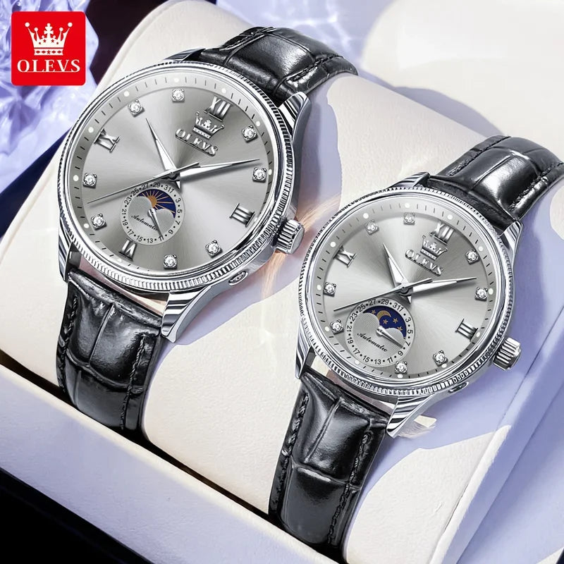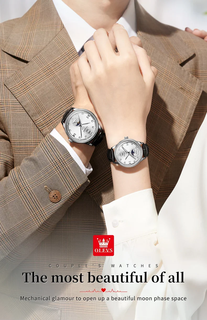 OLEVS 7039 Business Diamond Mechanical Couple Watch For Men Women Date Moon Phase Hand Clock Waterproof Luxury Automatic Watches Read more