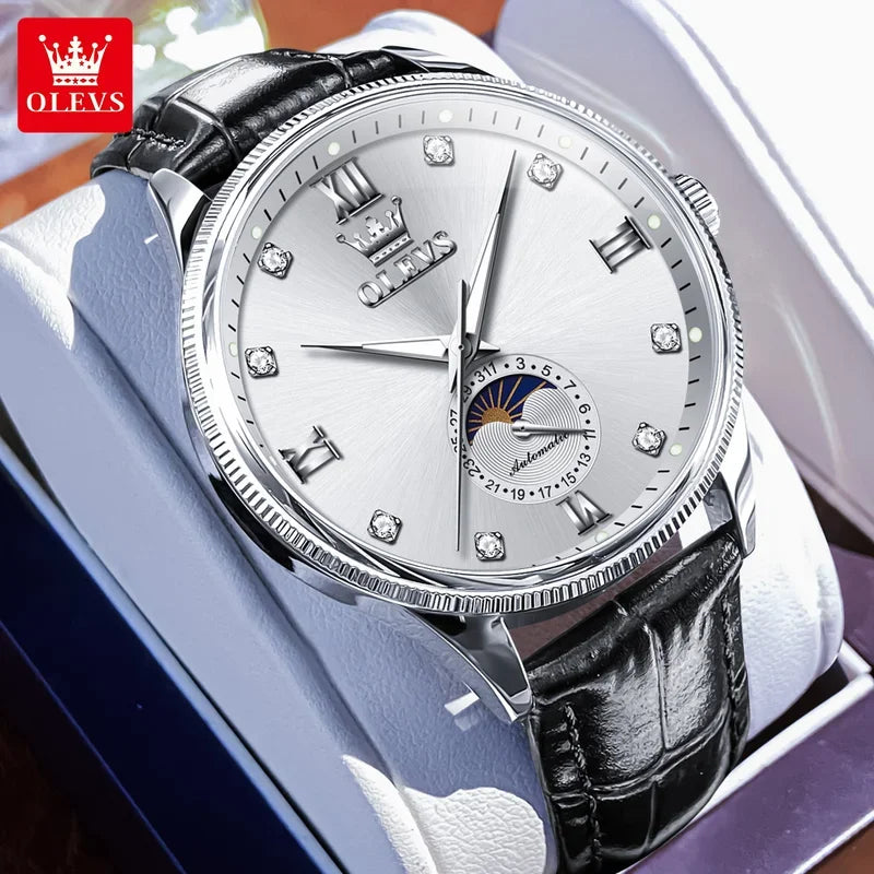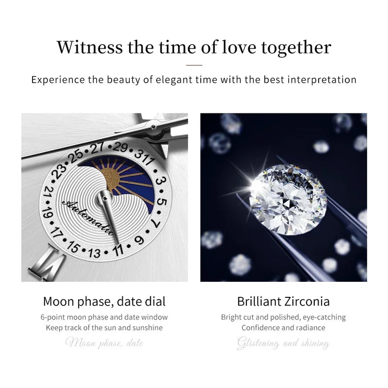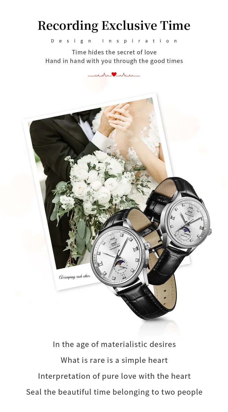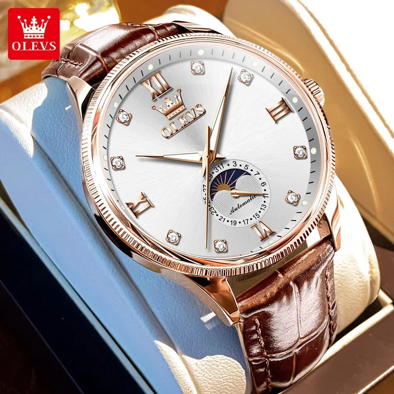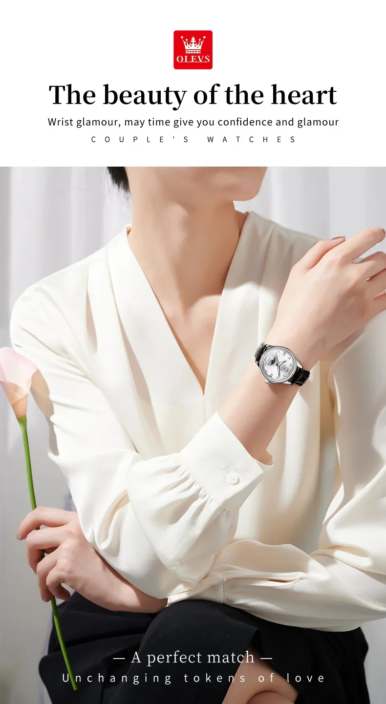 OLEVS 7039 Business Diamond Mechanical Couple Watch For Men Women Date Moon Phase Hand Clock Waterproof Luxury Automatic Watches Read more