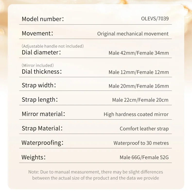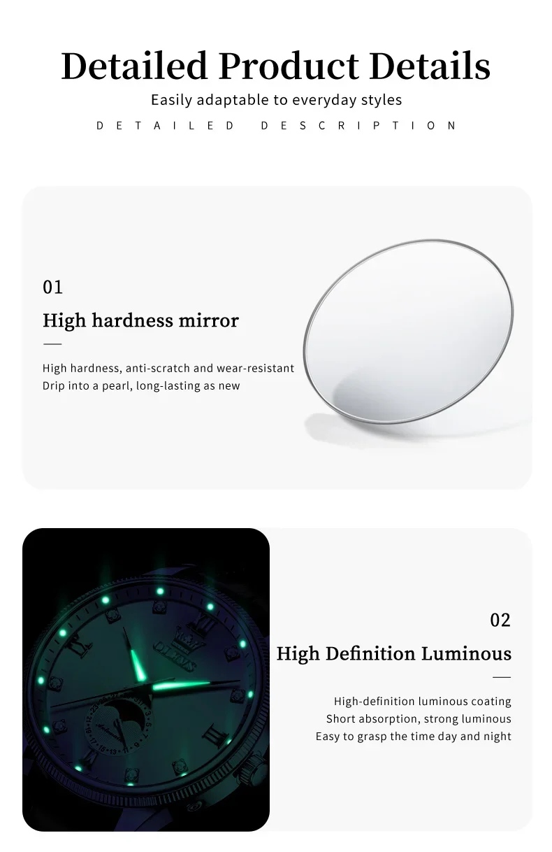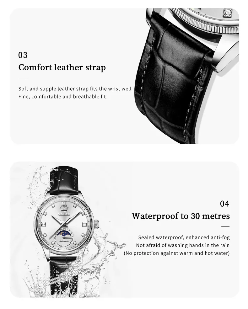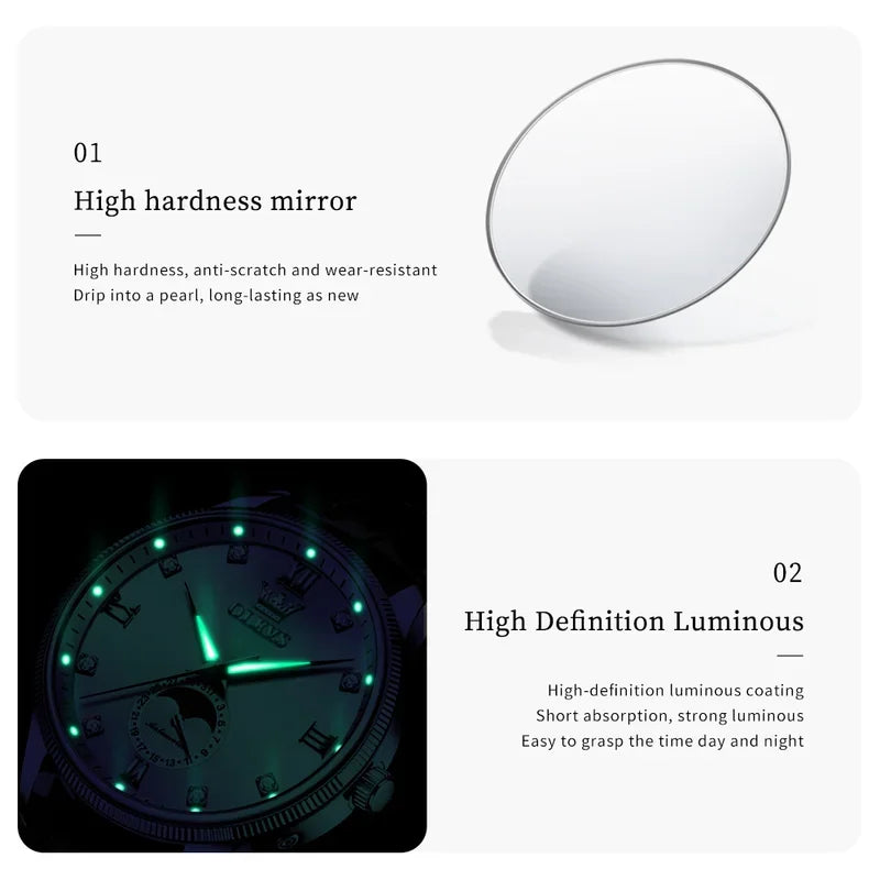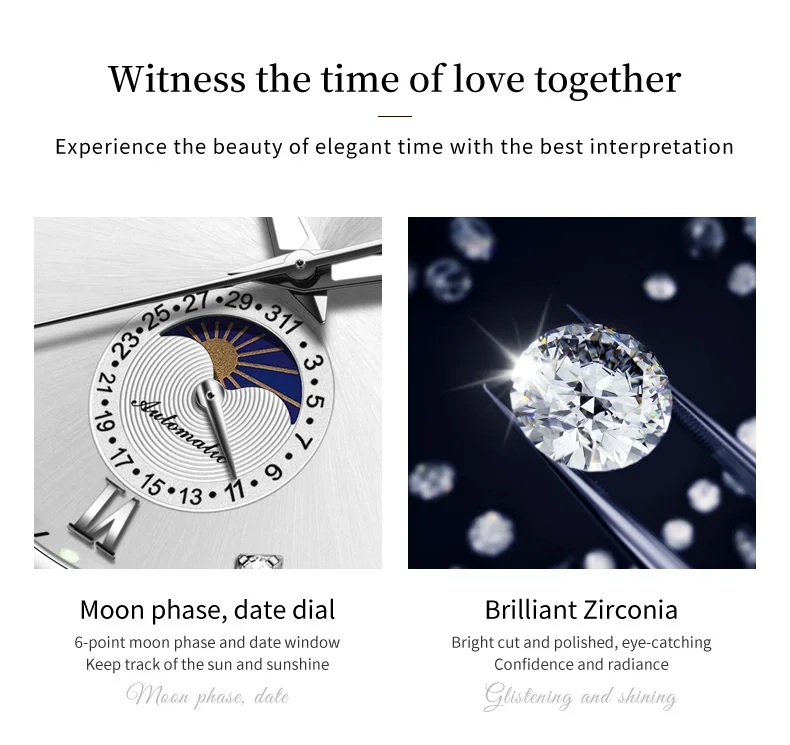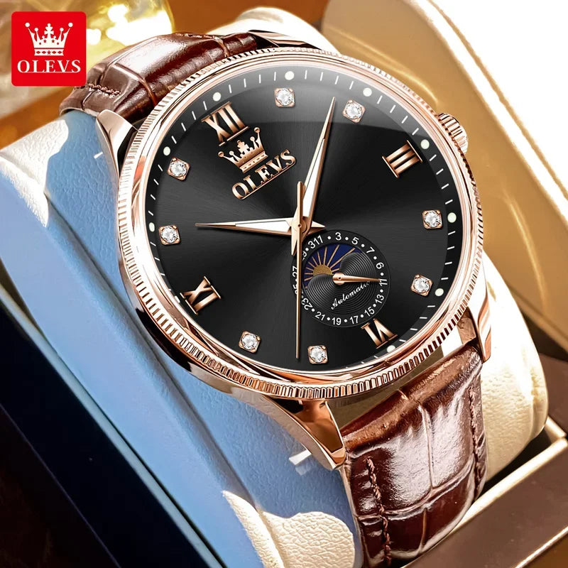 OLEVS 7039 Business Diamond Mechanical Couple Watch For Men Women Date Moon Phase Hand Clock Waterproof Luxury Automatic Watches Read more