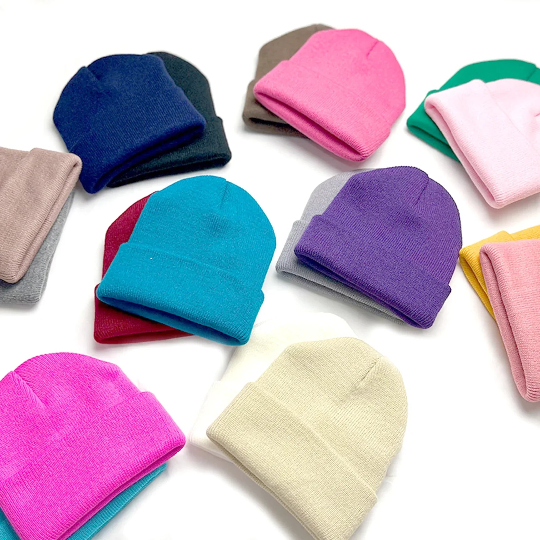Parent-child Newborn Kids Adult Hat Winter Knitted Beanie Mother Kids Hat Girls Solid Crochet Bonnet Cap Infantil Wool Skullies