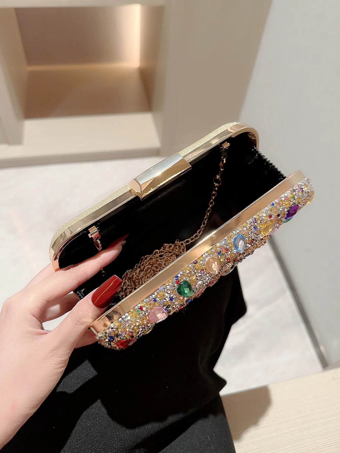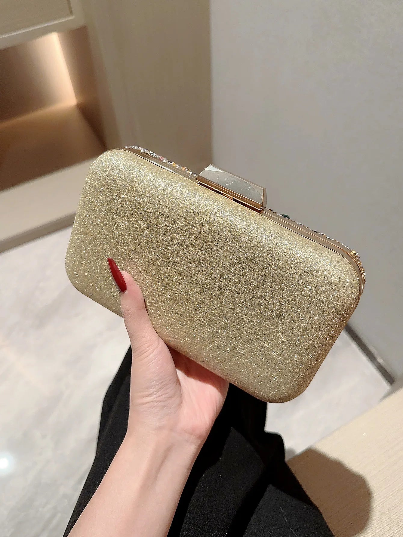 Popular evening bag, shiny rhinestone diamond clutch bag, dress bag, evening bag, chain bag, classy square box bag for women