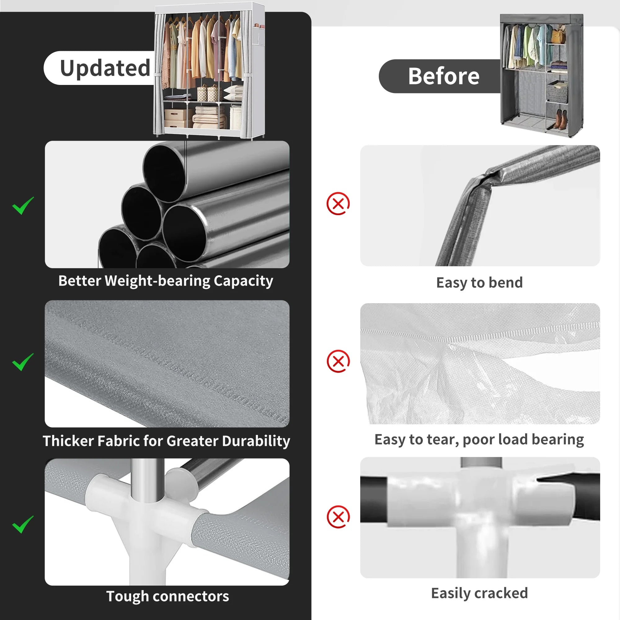 Portable Closet,Portable Wardrobe Closet Storage with 3 Hanging Rods,6 Storage Shelves,Side Pocket for Clothes Storage Organizer,Gray