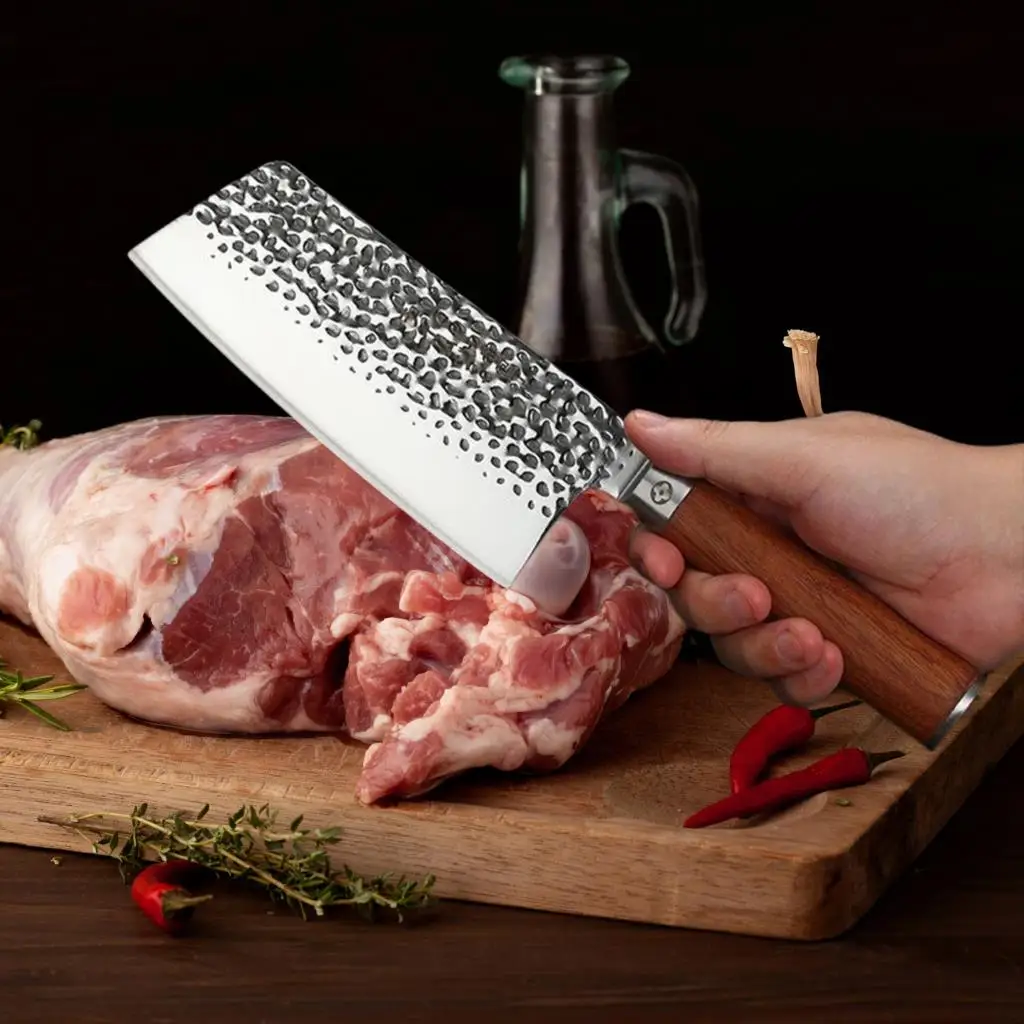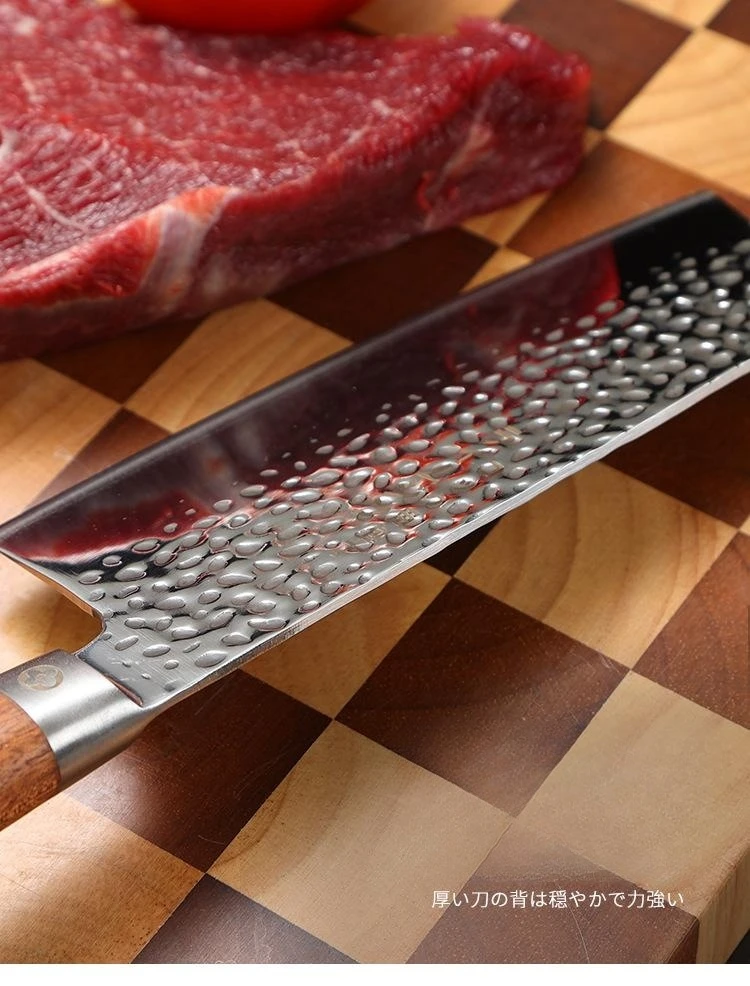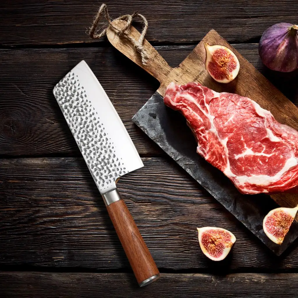 - Hand-forged craftsmanship with a striking hammer pattern.