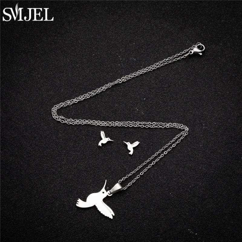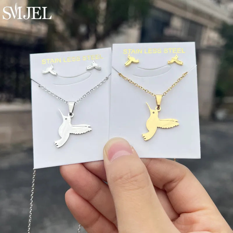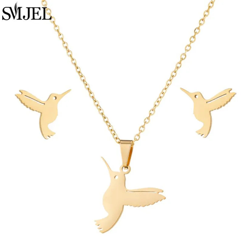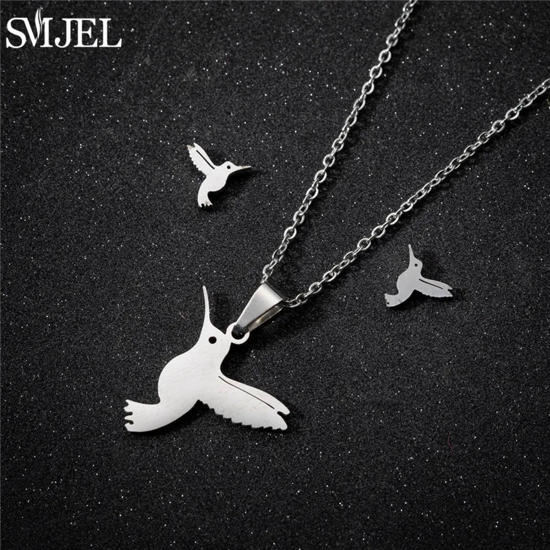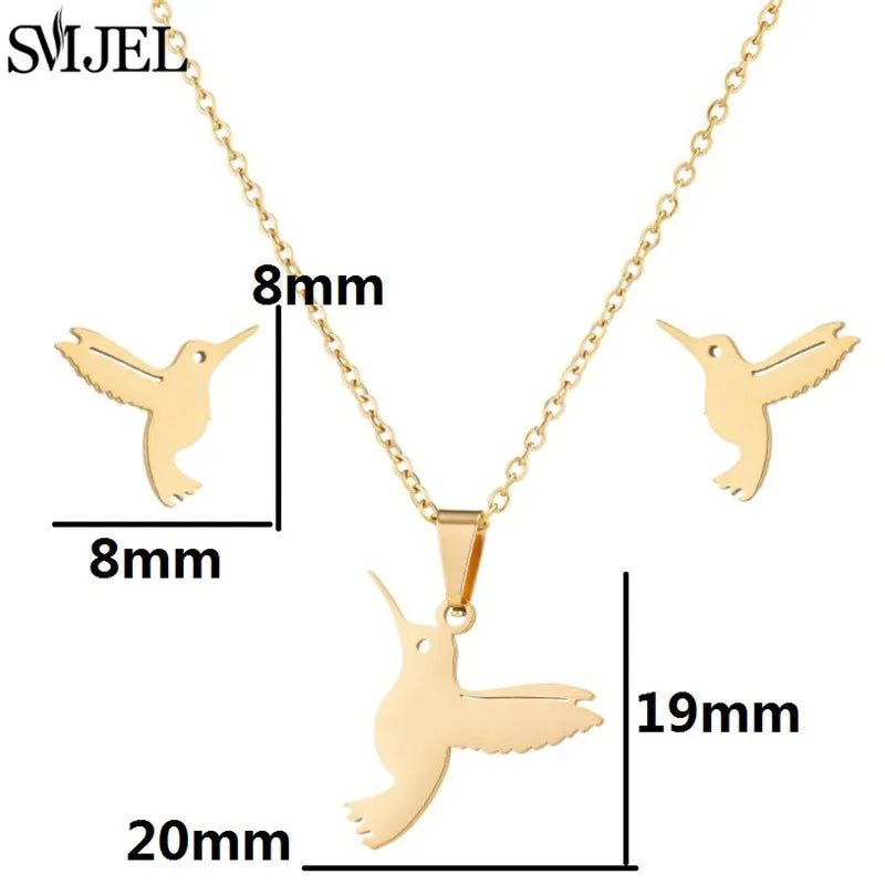 SMJEL Unique Animal Stainless Steel Earrings Small Flying Bird Pendant Hummingbird Necklace for Women Jewelry Personality Gifts