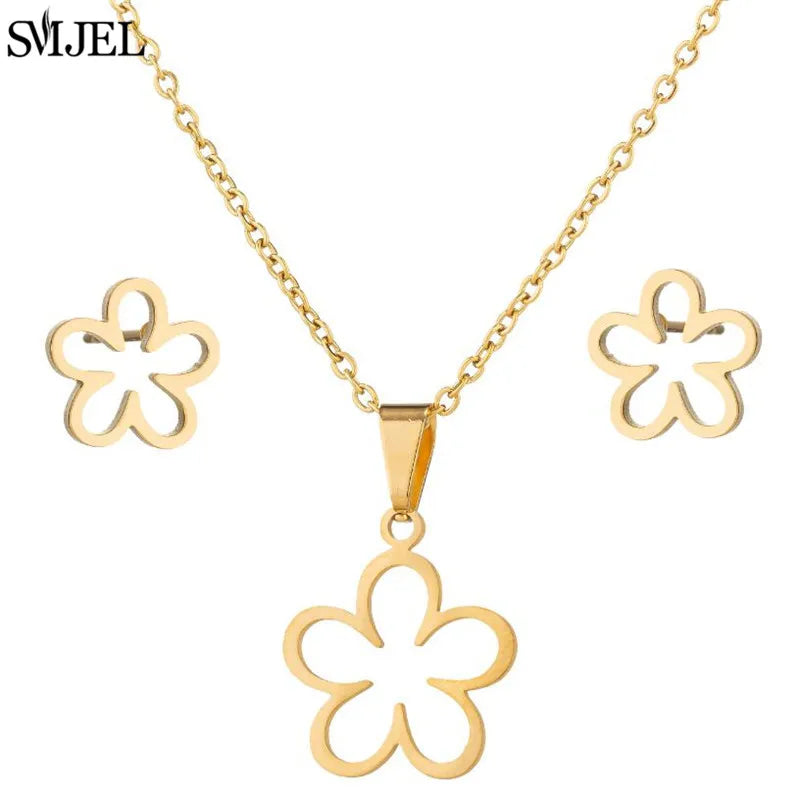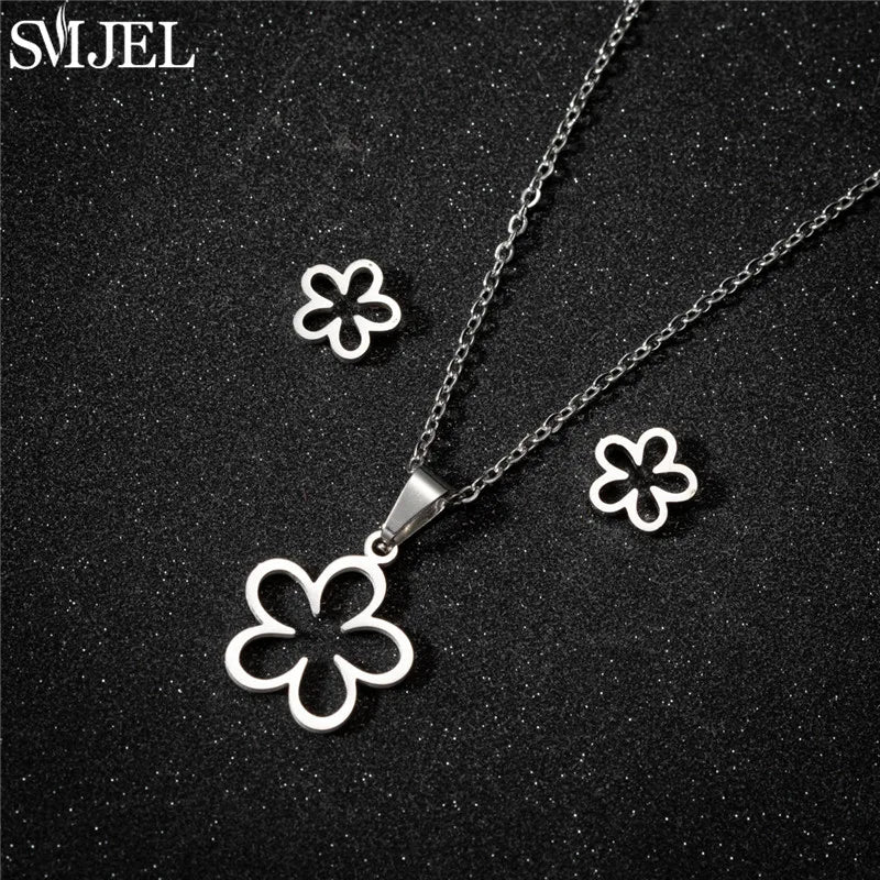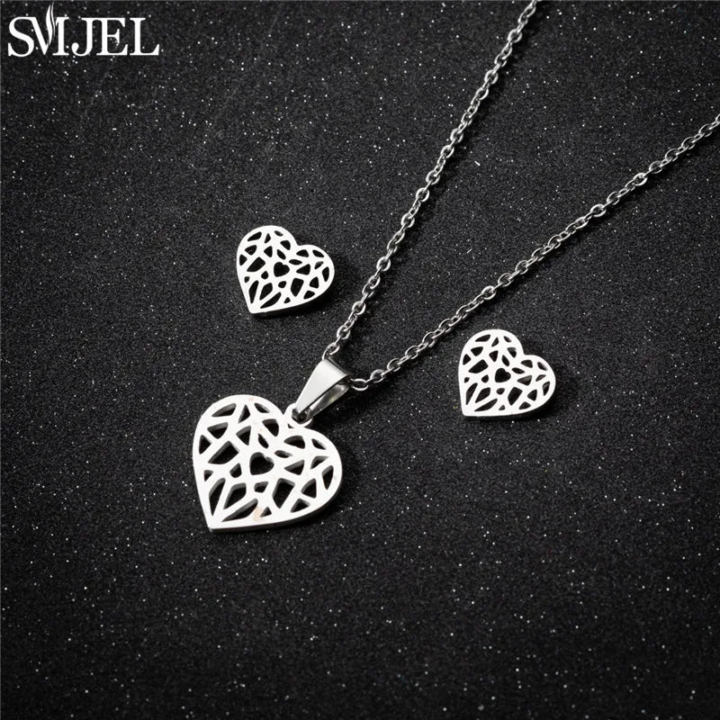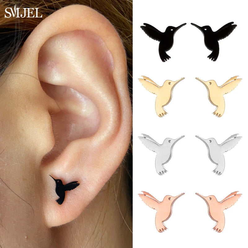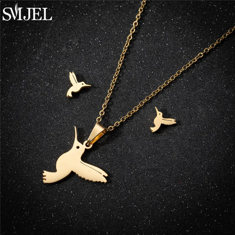 SMJEL Unique Animal Stainless Steel Earrings Small Flying Bird Pendant Hummingbird Necklace for Women Jewelry Personality Gifts