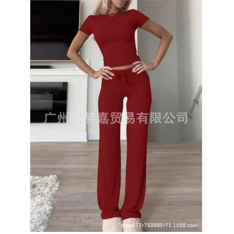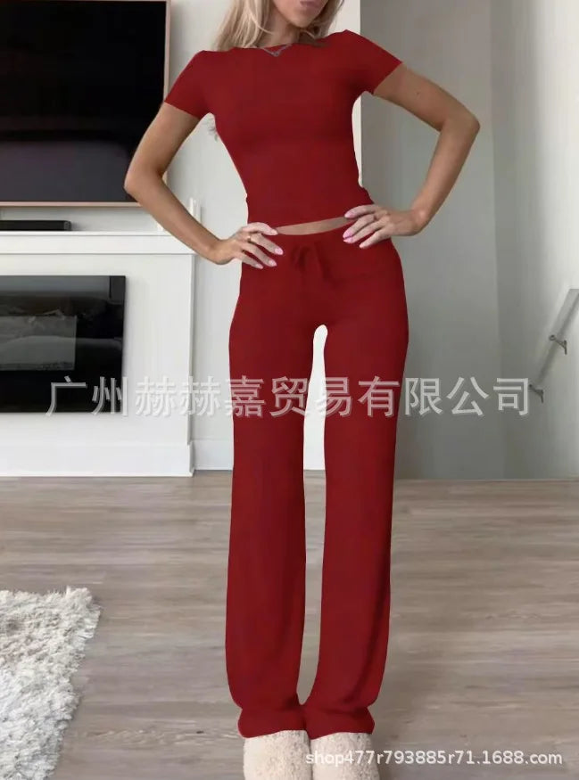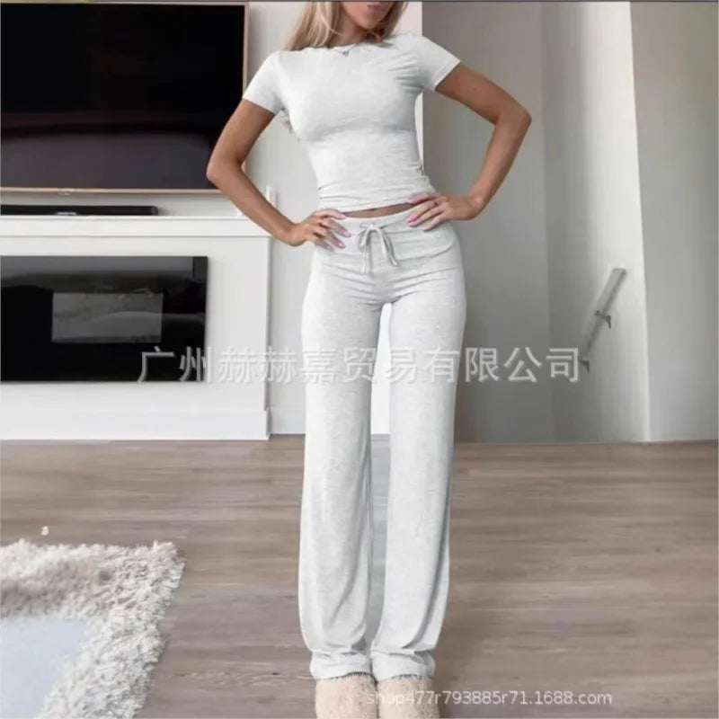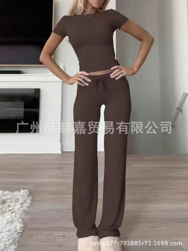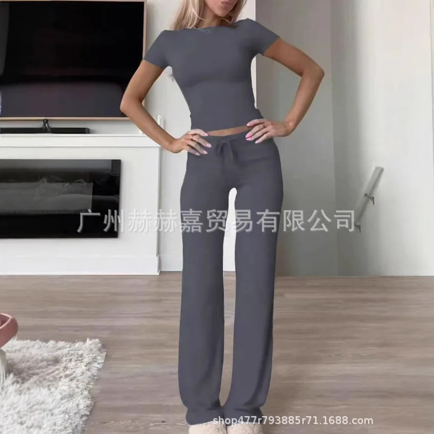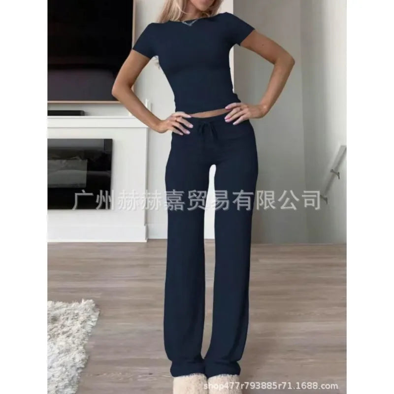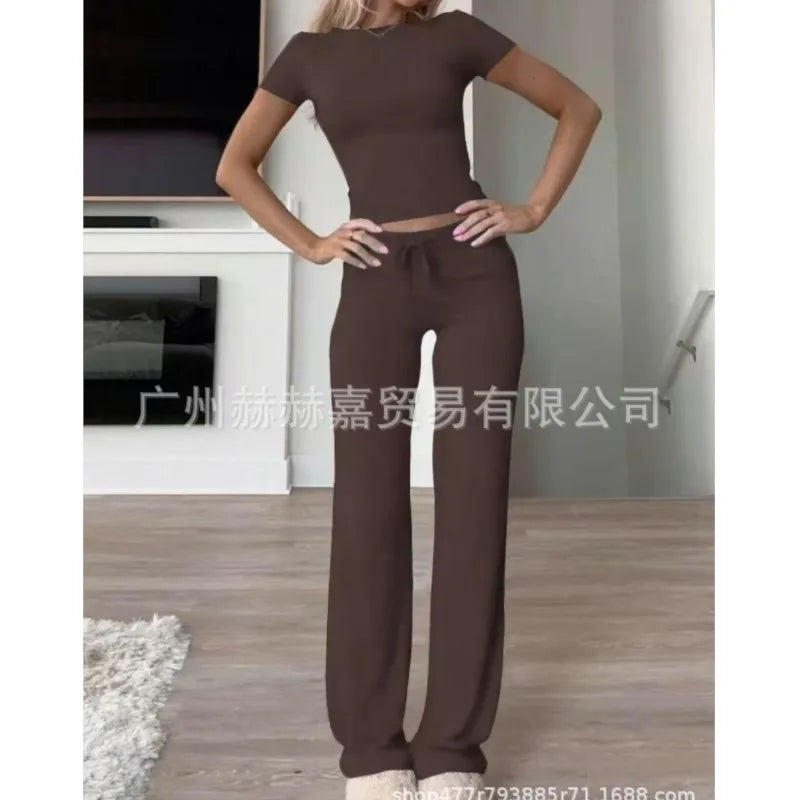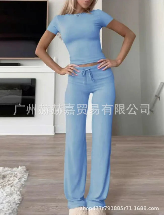 Spring Women's Two-piece Set 2025 New Casual Suit Short Sleeved Slim Fit Top Long Pants Home Wear Sportswear Yoga Wear For Women