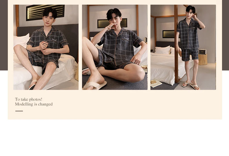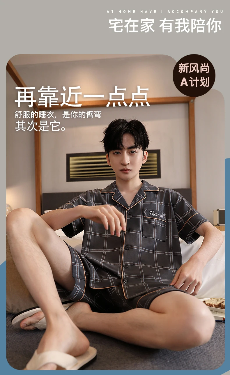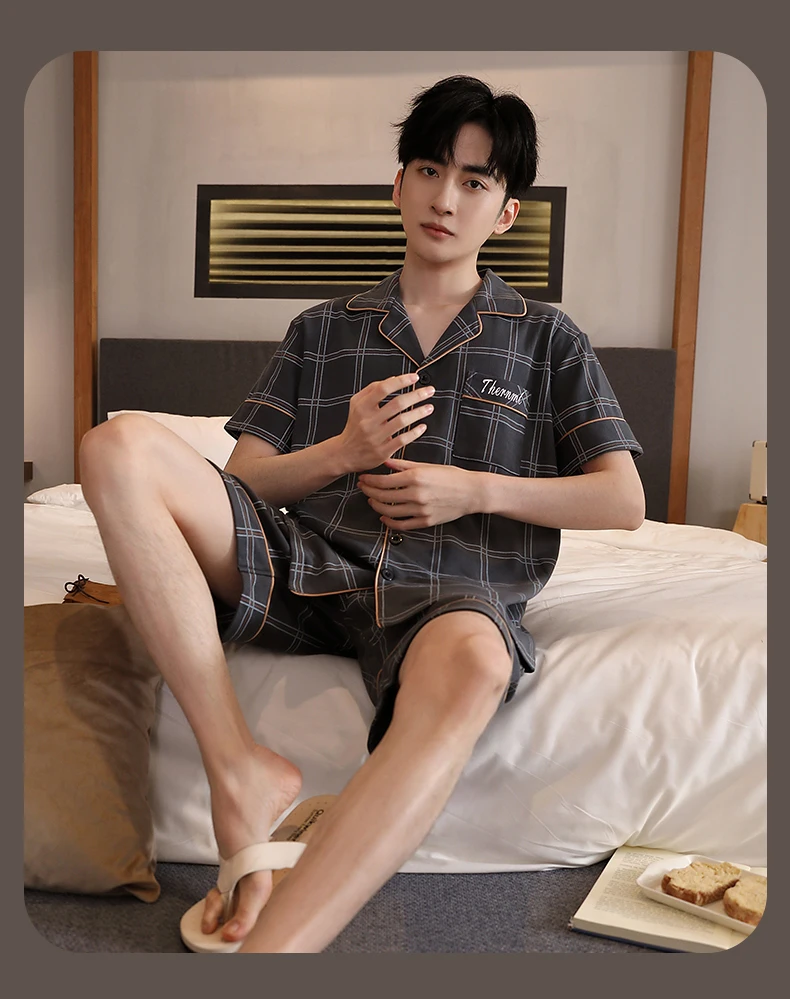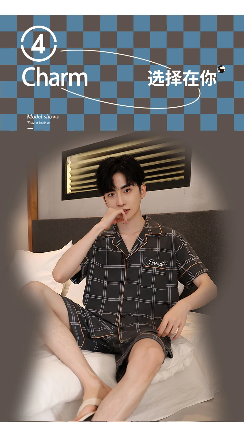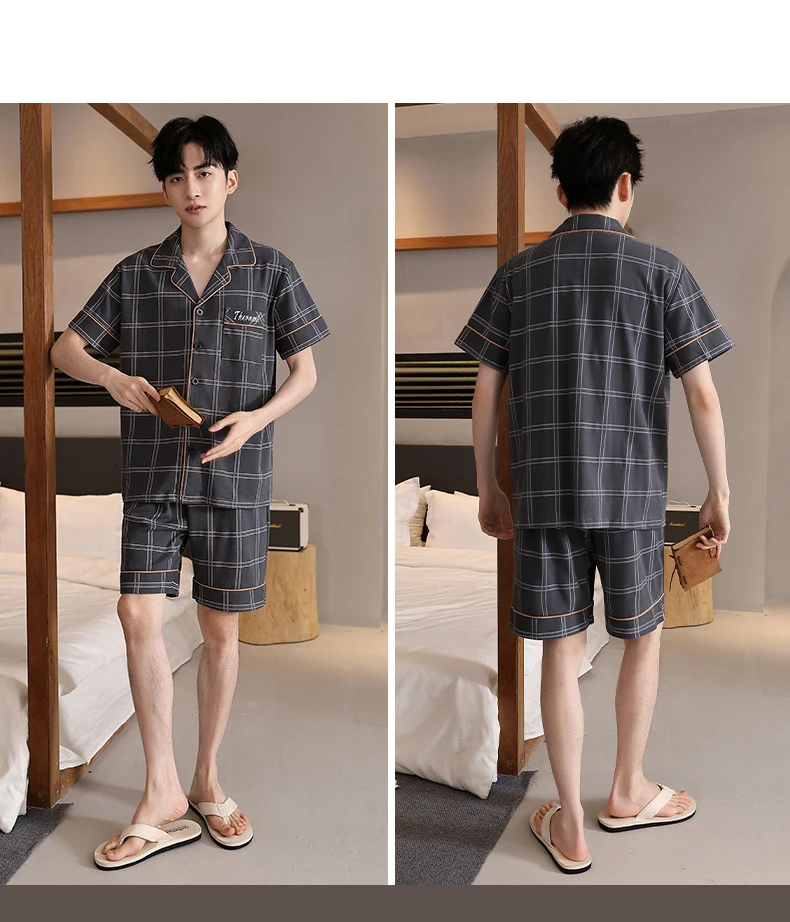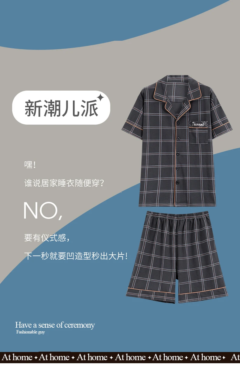 SUKAE Plaid Pyjamas Men Cardigan Lapeled Gentleman's Home Wear Summer Shorts Cotton Lounge Wear Plus Size L-5XL Pyjama Sleepwear Material:Knitted... Read more
