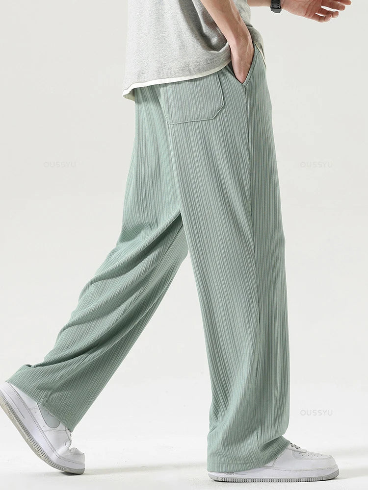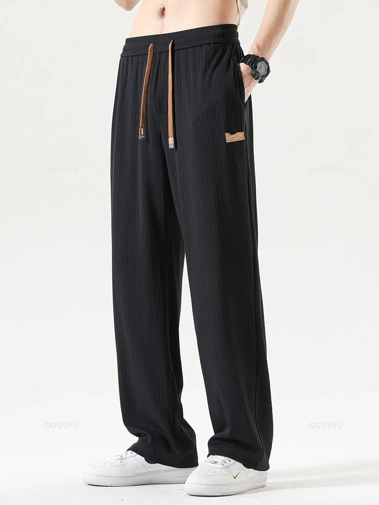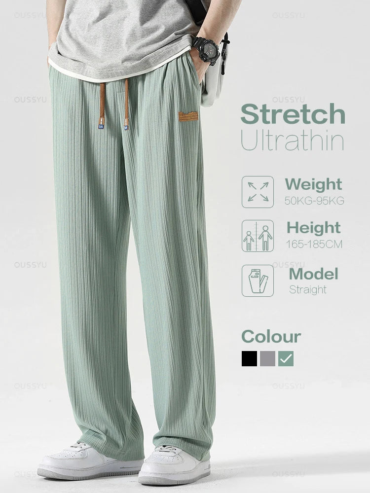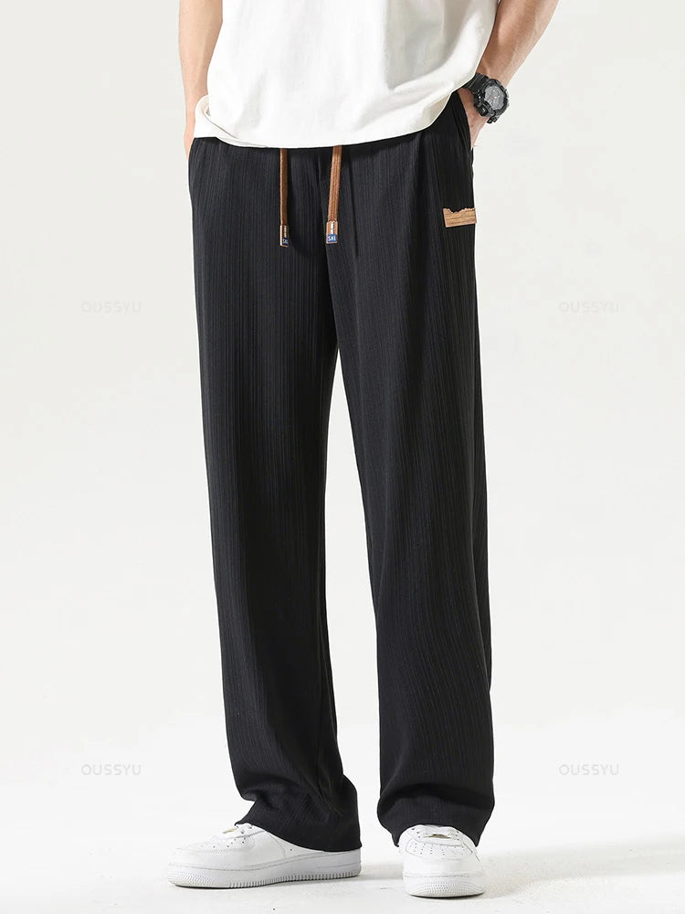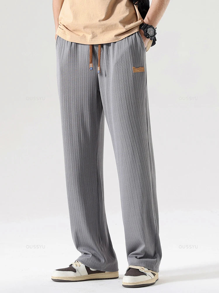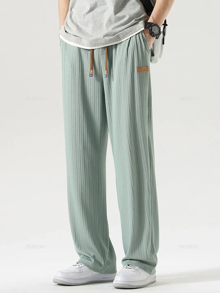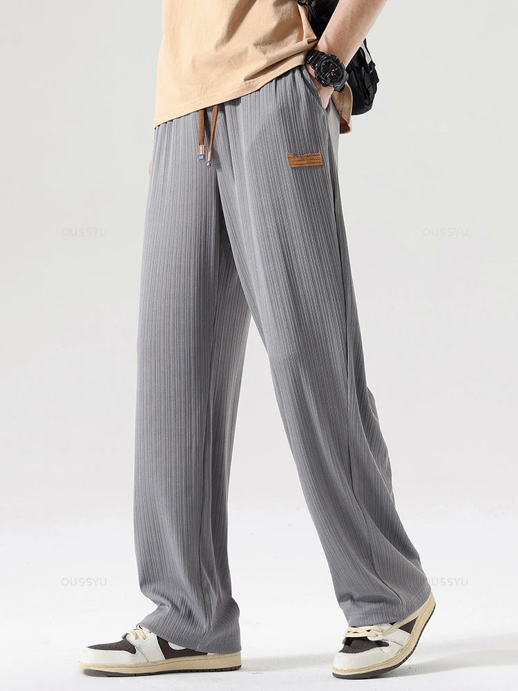 Summer Striped Pattern Breathable Pendant Casual Pants Men Thin Loose Straight Wide Leg Elastic Waist Jogger Trousers Streetwear