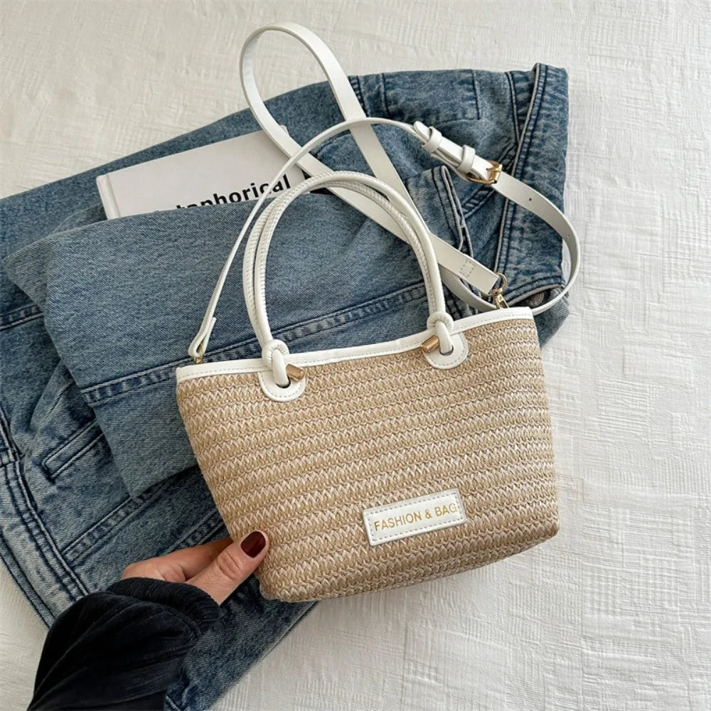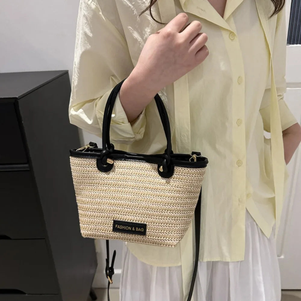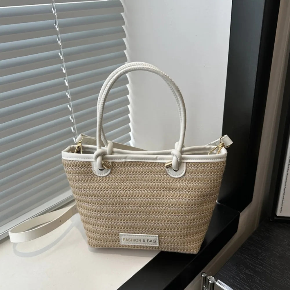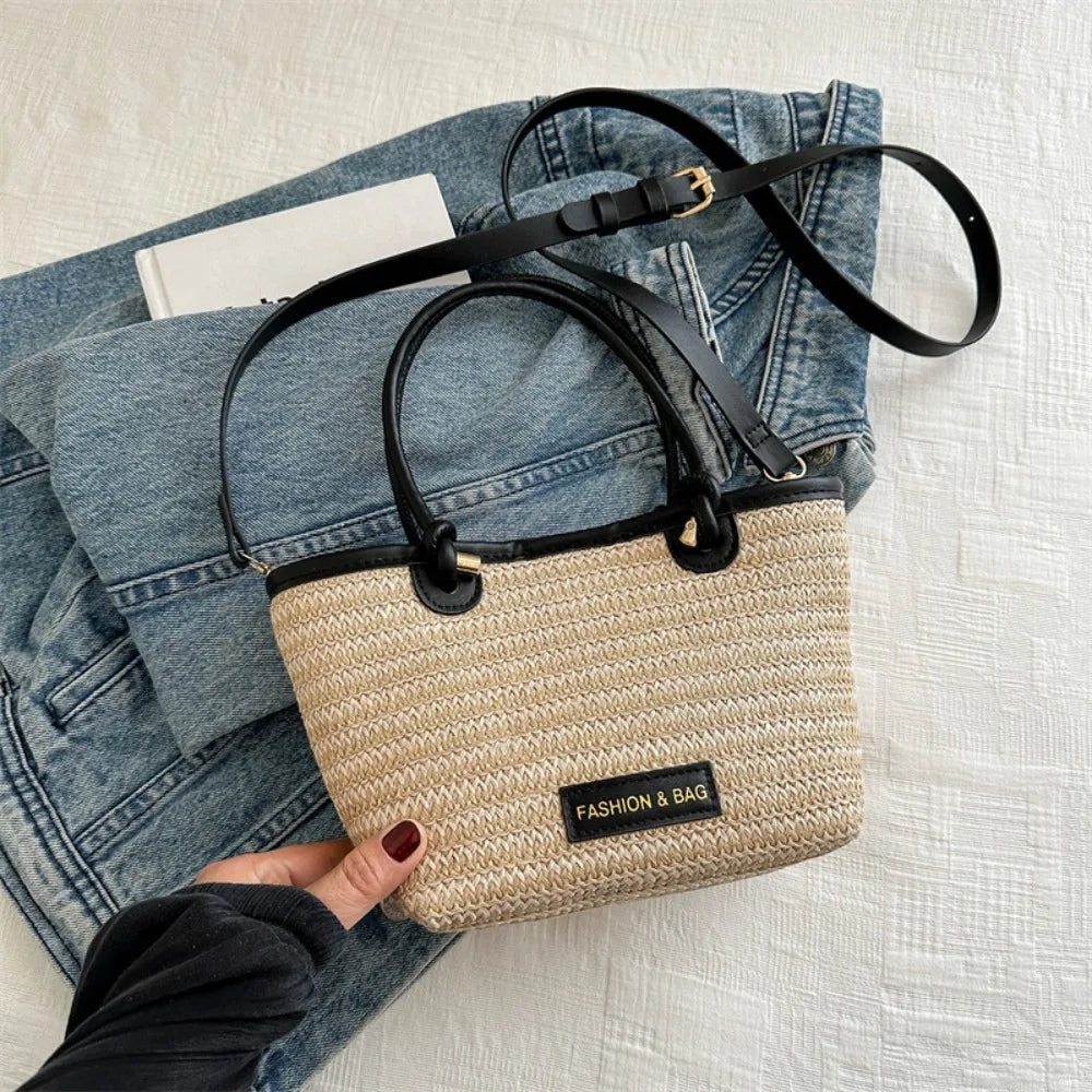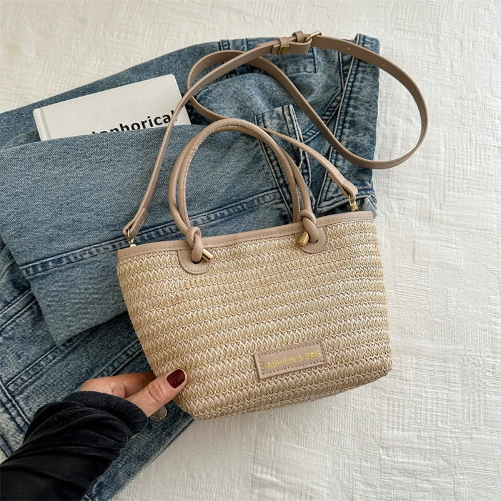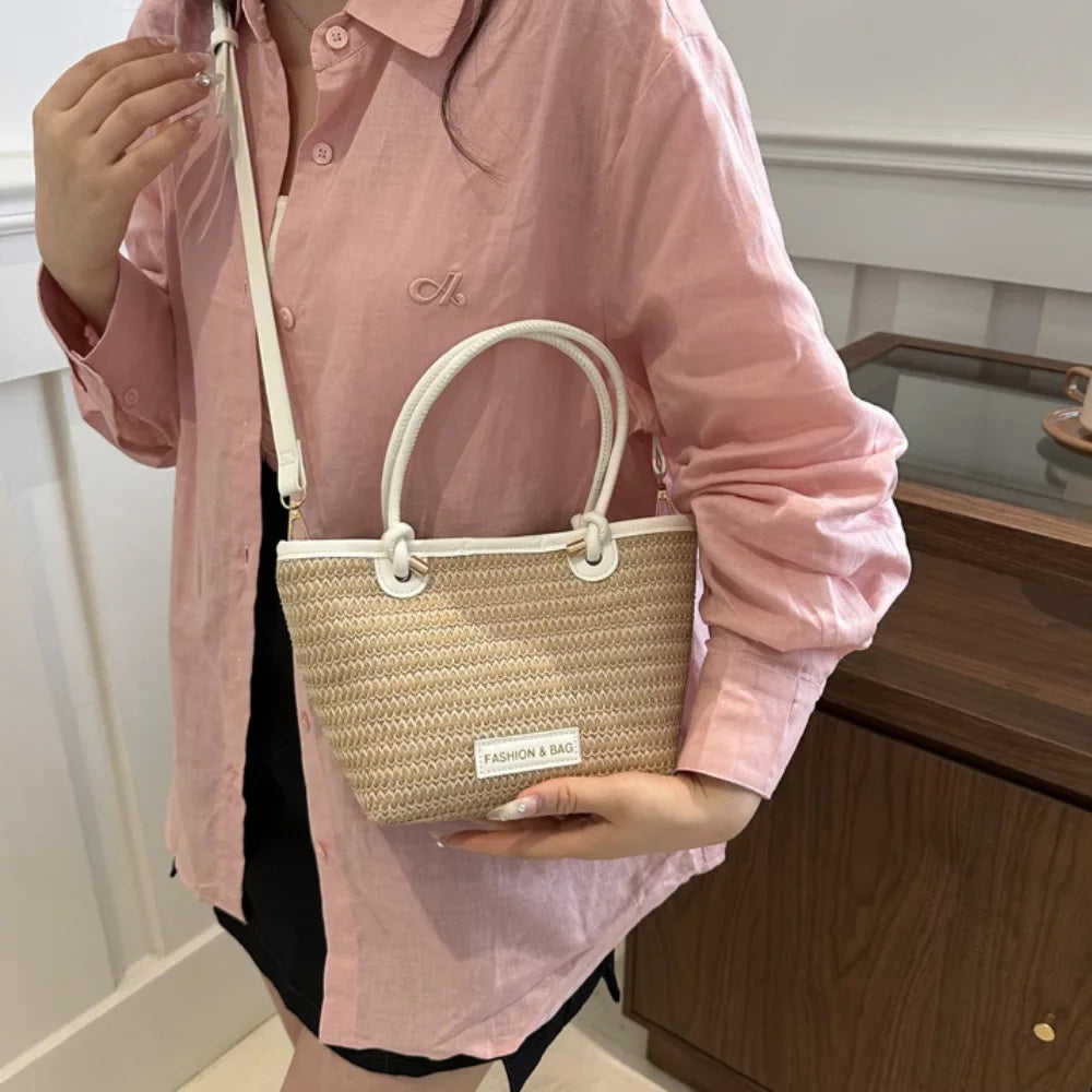 Trendy Straw Woven Shoulder Bag Handbag Casual Messenger Bag Bucket Bag Summer Travel Beach Bag Tote Bag Daily Commuting Bag