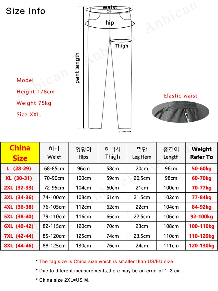 These sweatpants use China sizing, which runs smaller than US/EU/UK/Russia standards. For reference, China L roughly corresponds to US S, and the waist is adjustable with a drawstring to accommodate a range of fits. The product page provides a size chart for reference, but due to measurement differences (2–4 cm difference is possible), we recommend consulting our professional customer service team for tailored size advice. Model reference: height 178 cm, weight 75 kg, wearing size XXL—a helpful indicator for achieving a relaxed yet secure feel.