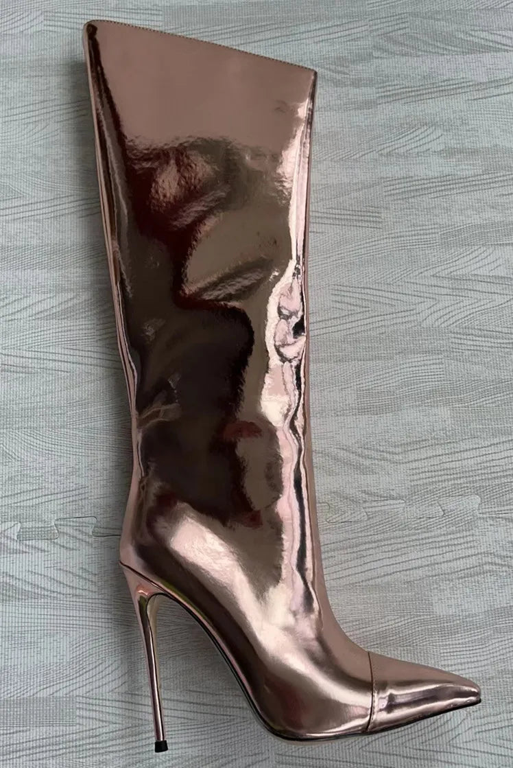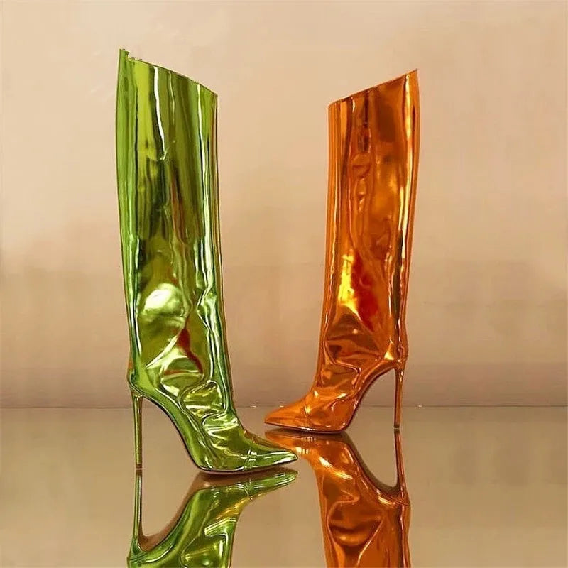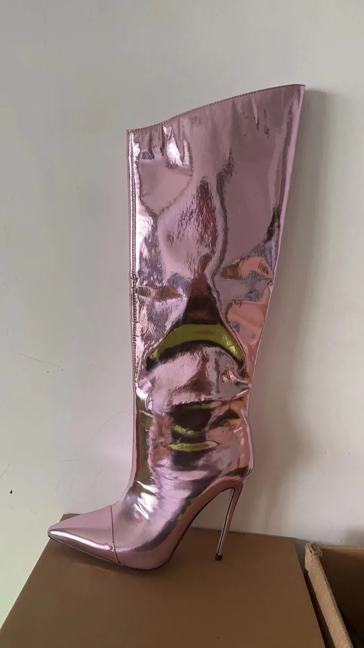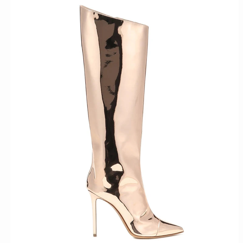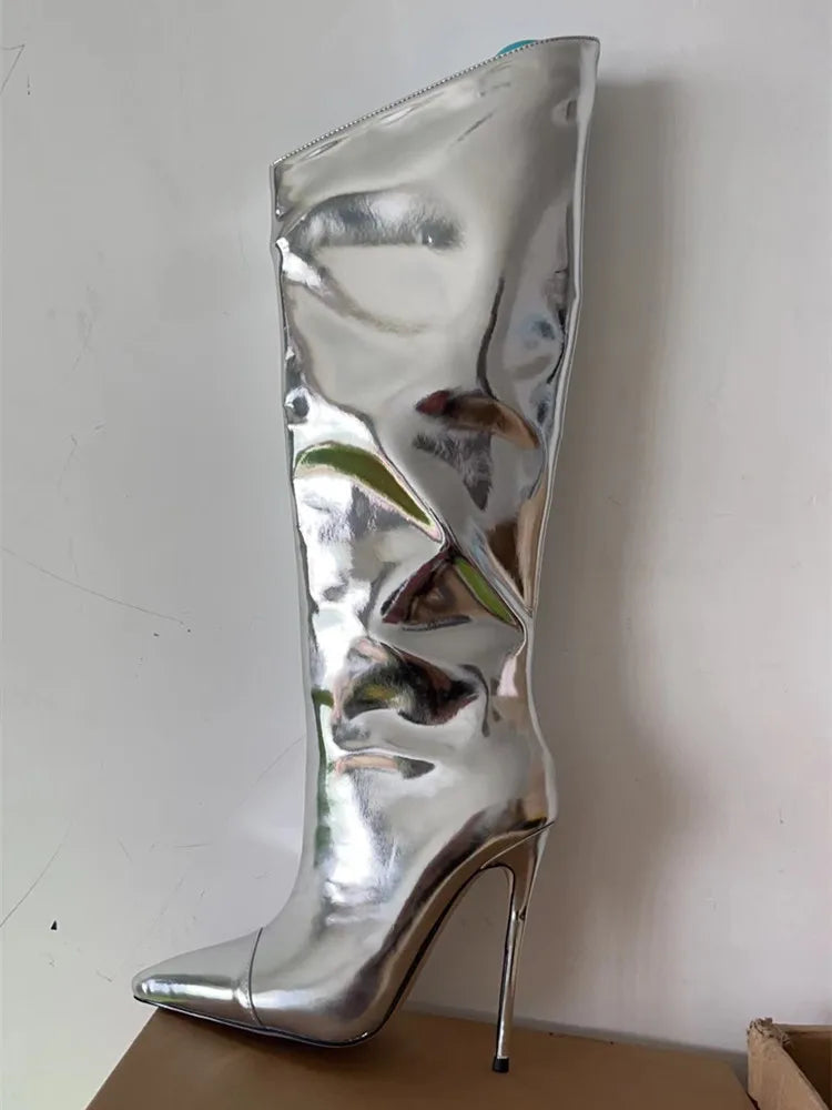 Women's High Boots Gold Silver Pointed Toe Knee-high Boots for Woman Sexy High Heels Party Shoes Ladies Thigh High Boots