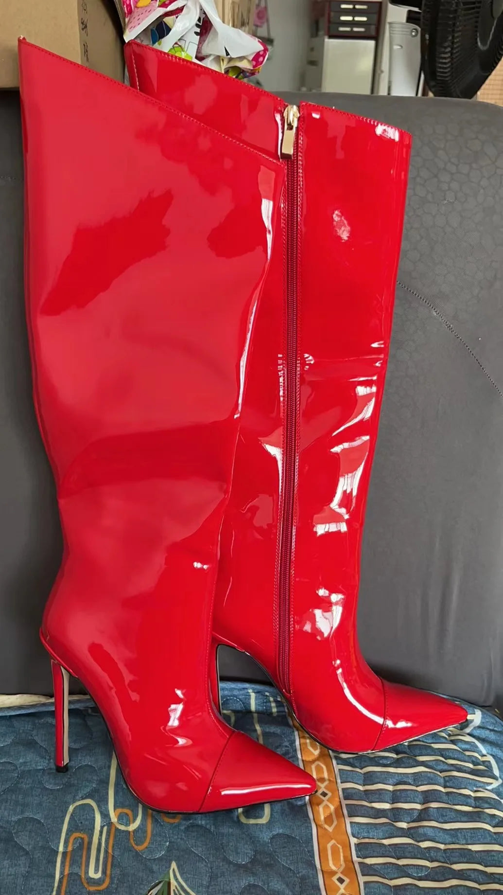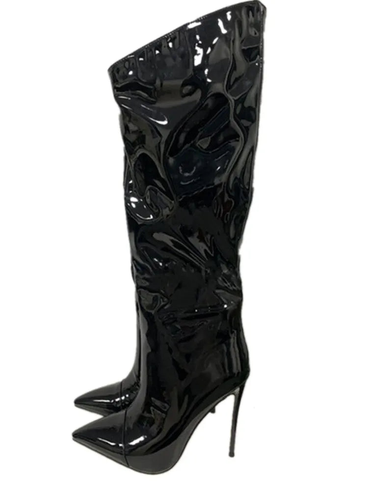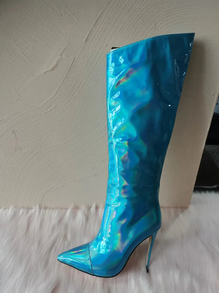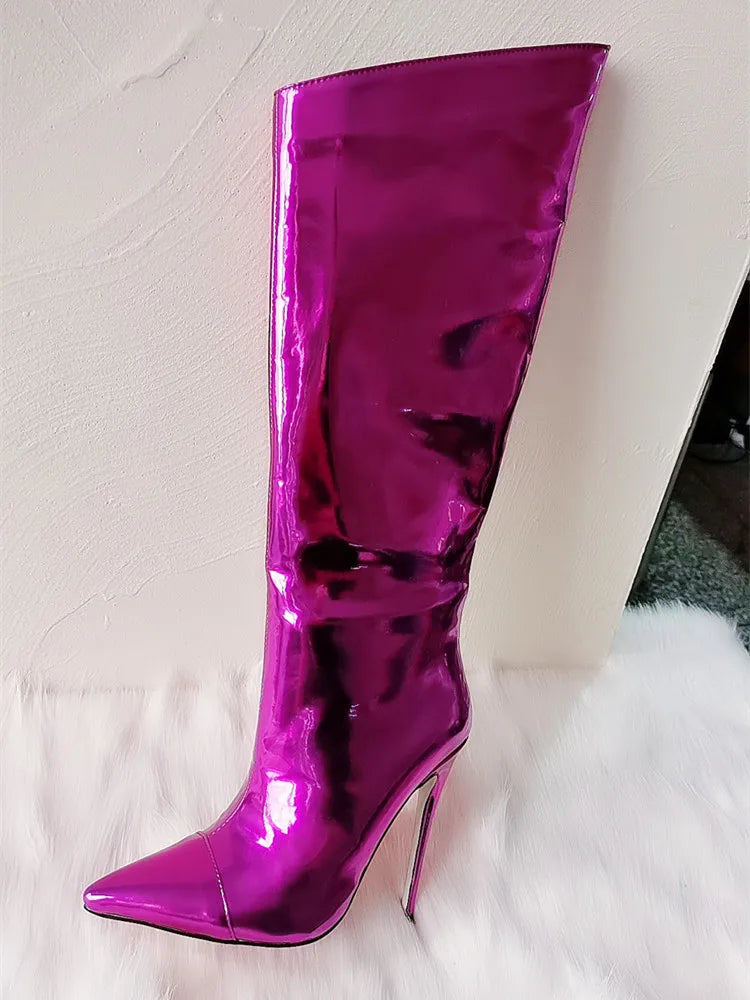 Women's High Boots Gold Silver Pointed Toe Knee-high Boots for Woman Sexy High Heels Party Shoes Ladies Thigh High Boots