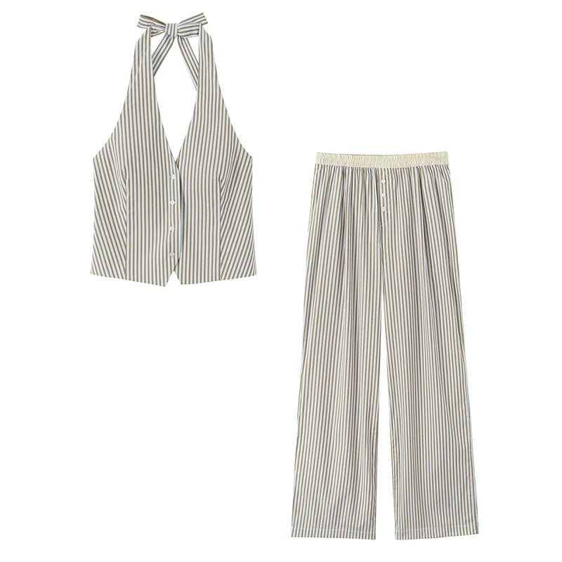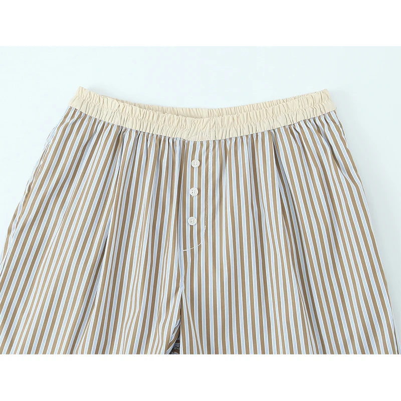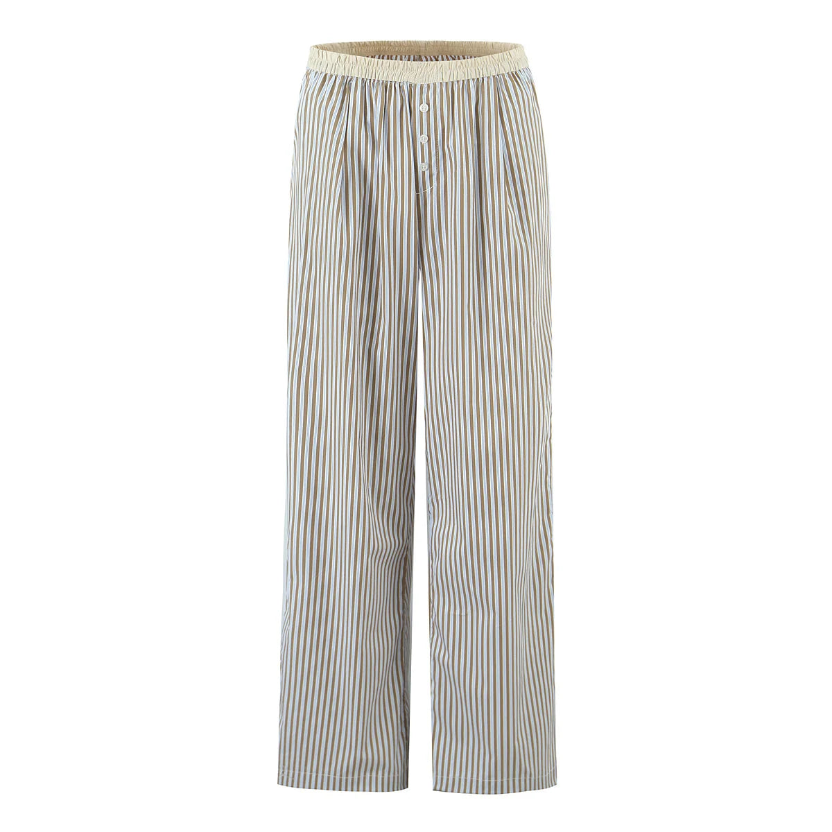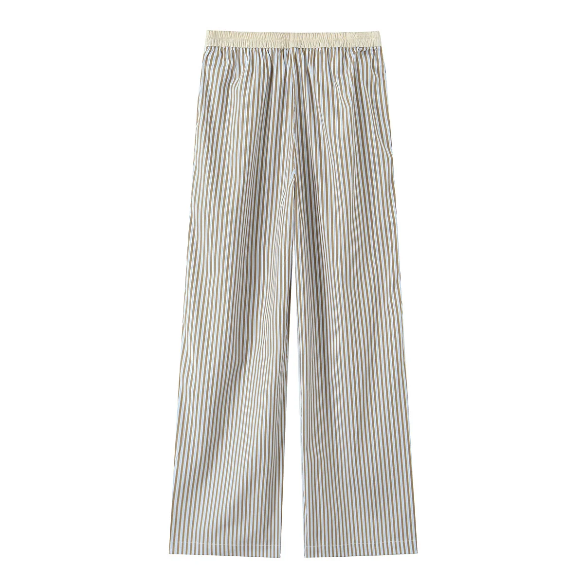 YENKYE Europe And America Striped Wide Leg Pants Women Vintage Elastic High Waist Casual Summer Trousers Female pantalones